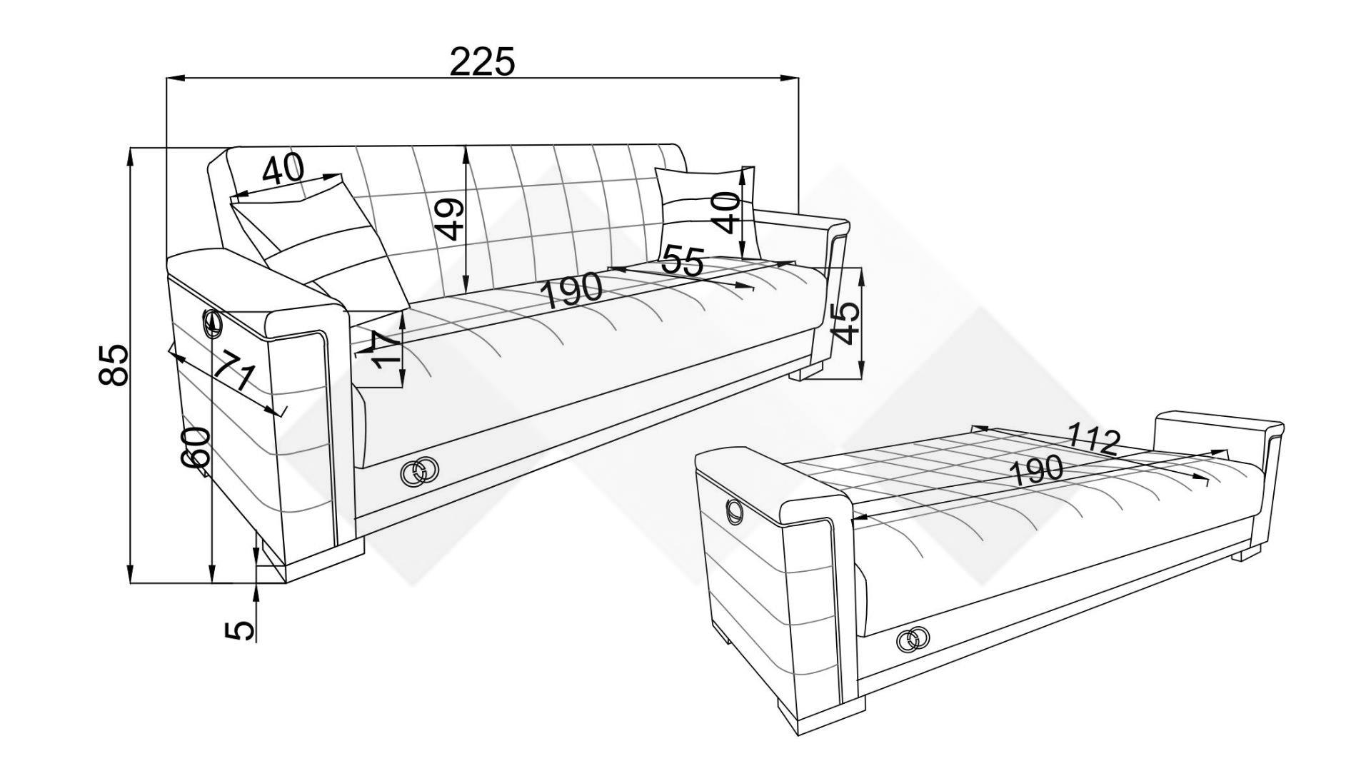 Диванът има здрава конструкция с бонел пружина, отличаваща се с устойчивост за дълъг период на употреба.