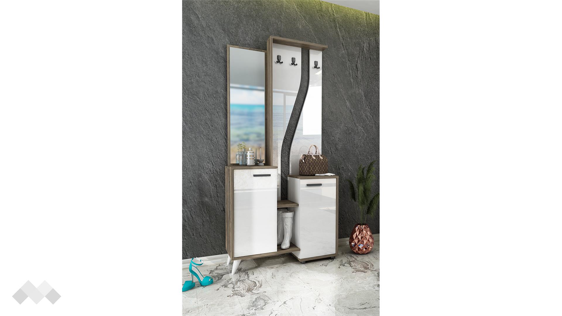 В съвременните жилища пространството е все по-ограничено, а надали има човек, който да не иска удобно разпределен и добре организиран дом. На помощ идват практичните мебели, които предлагат смарт решения за организиране на вещи в малки помещения. Затова смятаме, че портманто Амбър е чудесен избор. Стилната цветова комбинация би подхождала на всеки интериор.