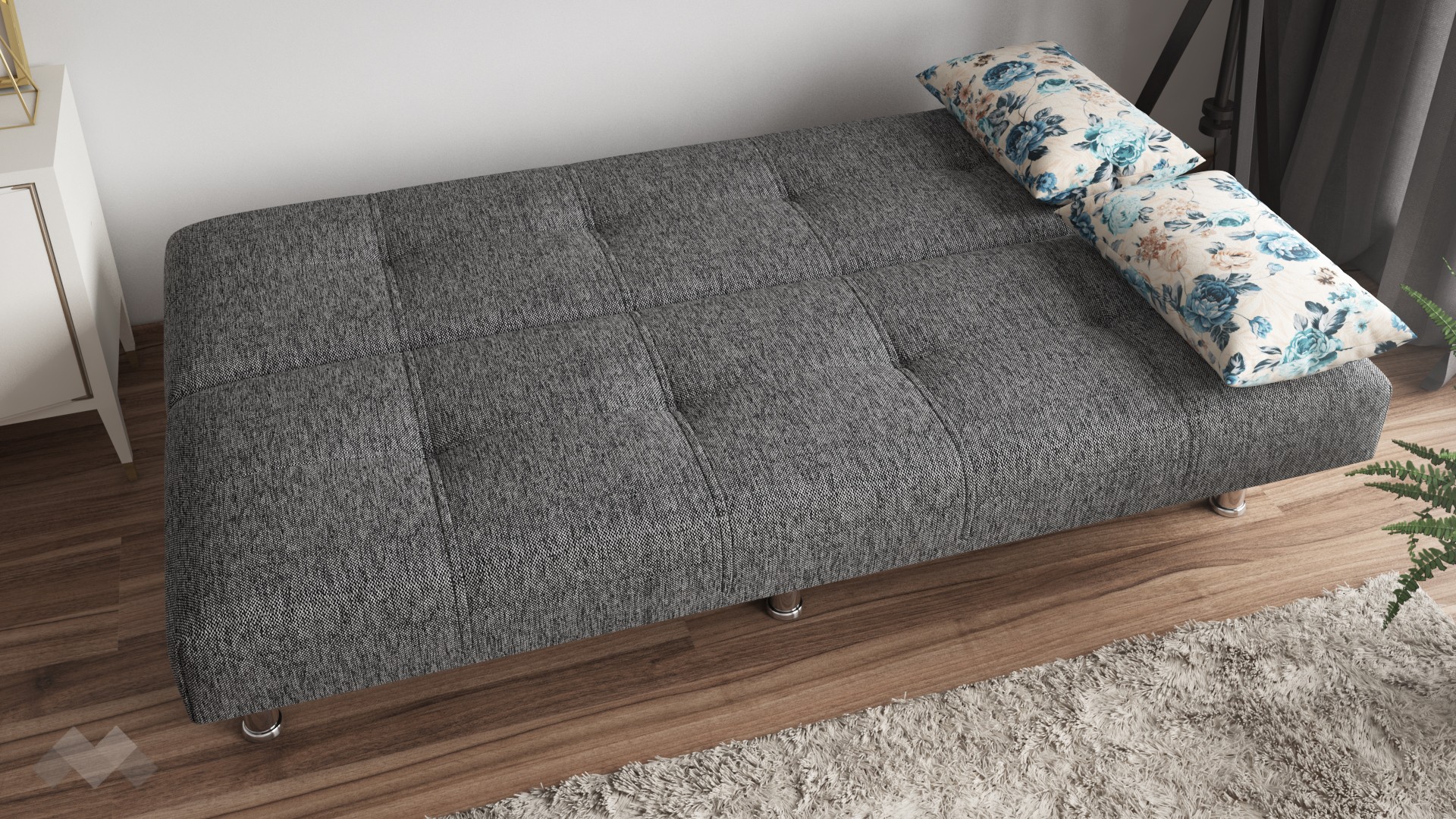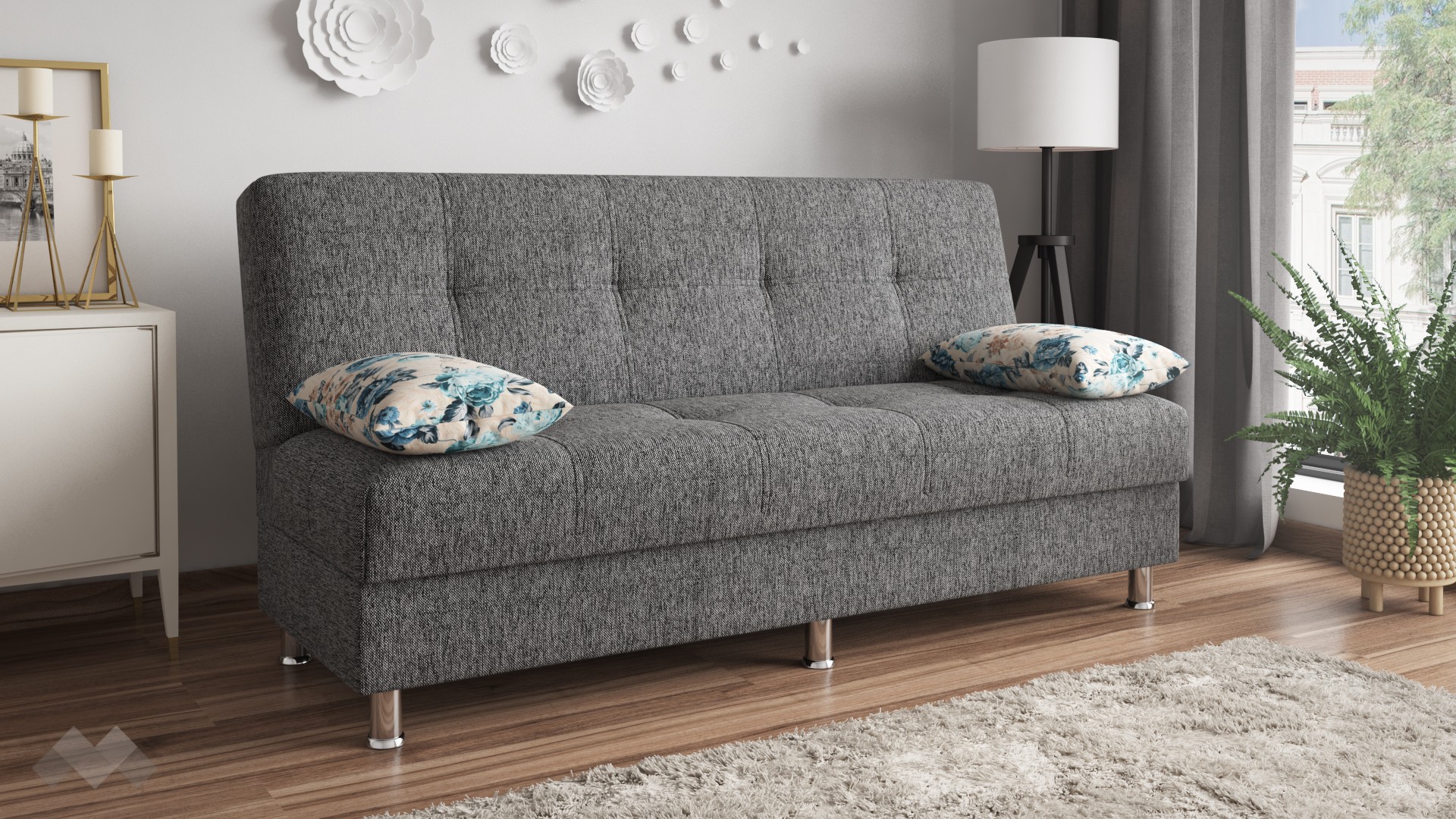 Клик-клак канапе Амстердам ще те впечатли със семплата си визия, изчистени линии и различен дизайн. Моделът е с компактни размери, което го прави подходящ и за по-малки жилища. Подлакътниците, състоящи се от възглавници, са удобни, както и добре замислени - с едно движение можеш да ги махнеш и площта за сядане да се увеличи.