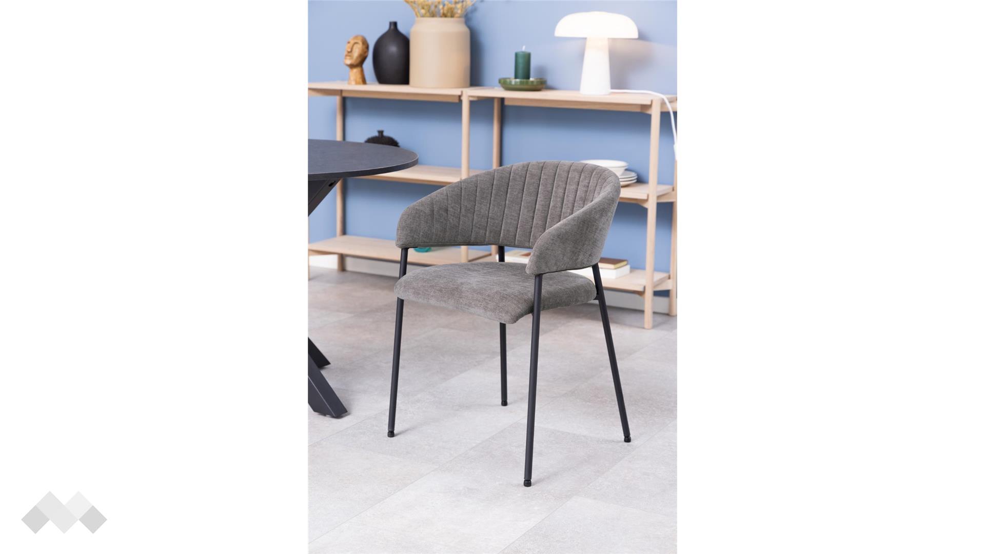Отвореният гръб не само добавя усещане за лекота във визията, но и осигурява допълнителен комфорт. Стоманените кръгли крака гарантират стабилност и хармонично се вписват в изчистената и модерна естетика на стола.