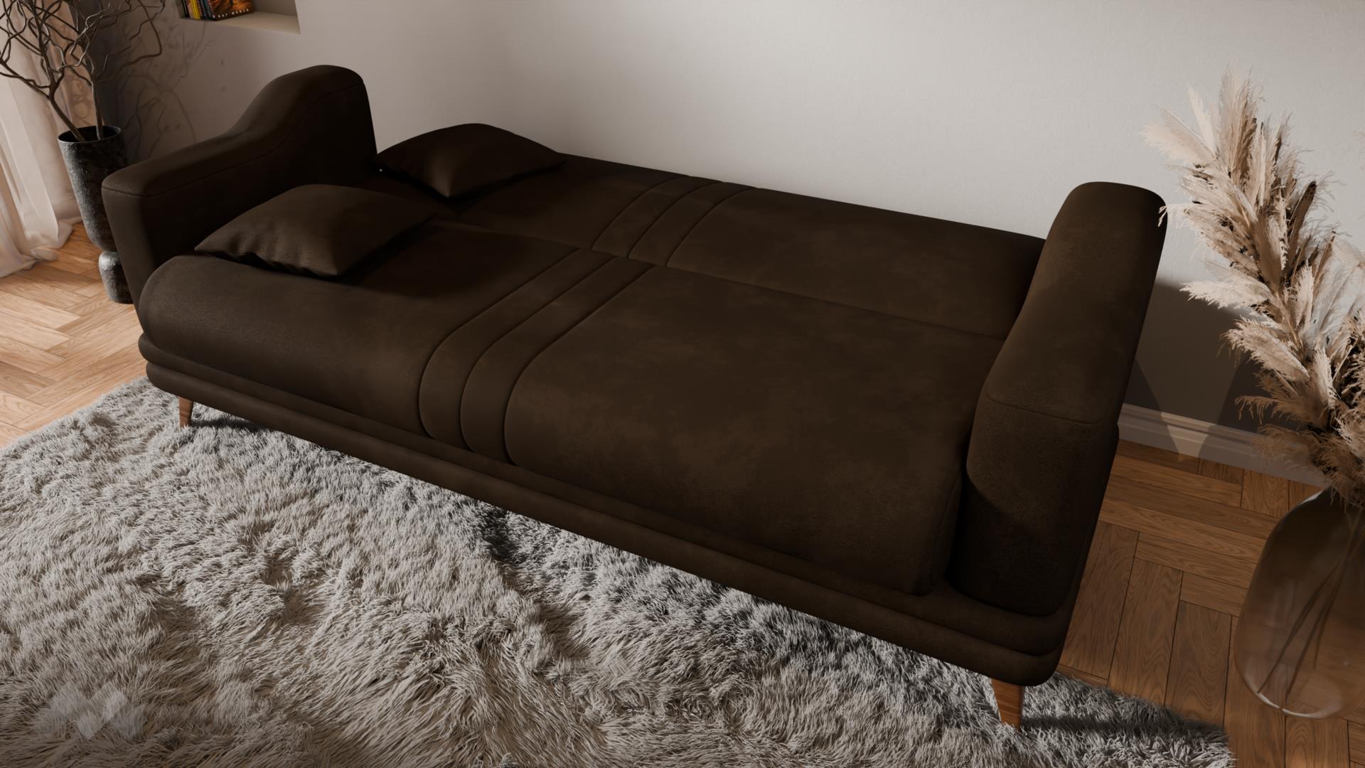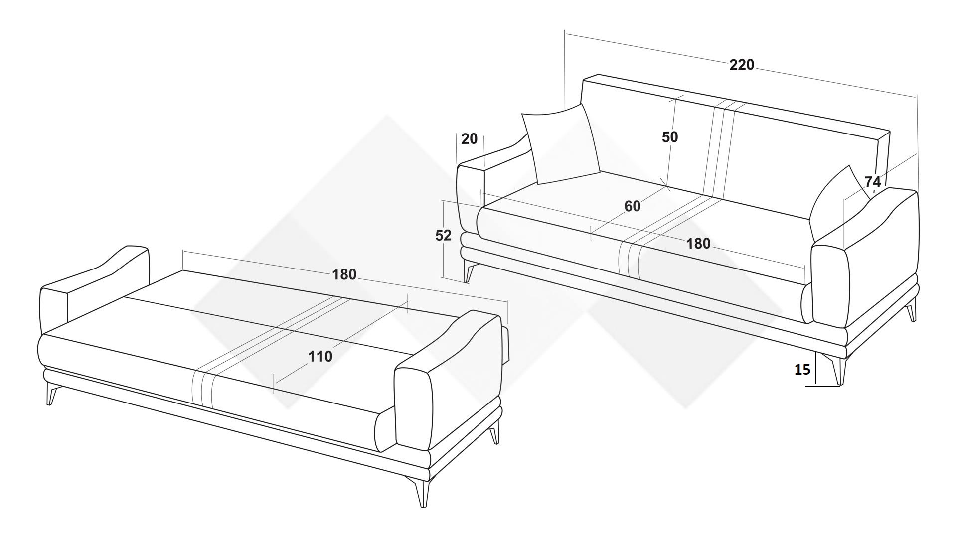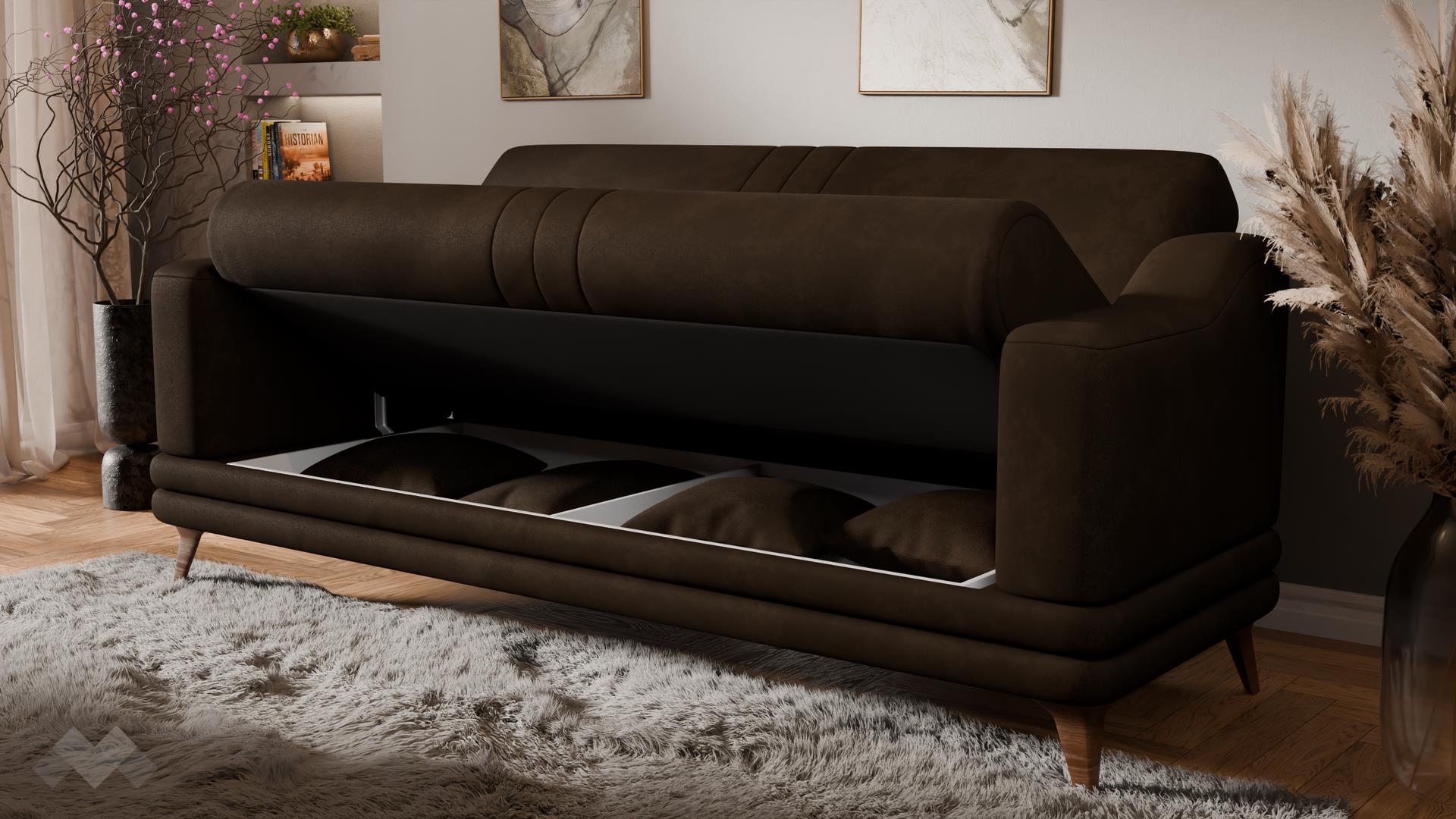Диванът разполага с функция сън с размер 110/180 см, която бързо и лесно го превръща в удобно легло - идеално както за ежедневна употреба, така и за гости. Благодарение на практичната ракла за съхранение, можеш удобно да подредиш одеяла, възглавници и спално бельо, без да заемаш допълнително място в стаята.
