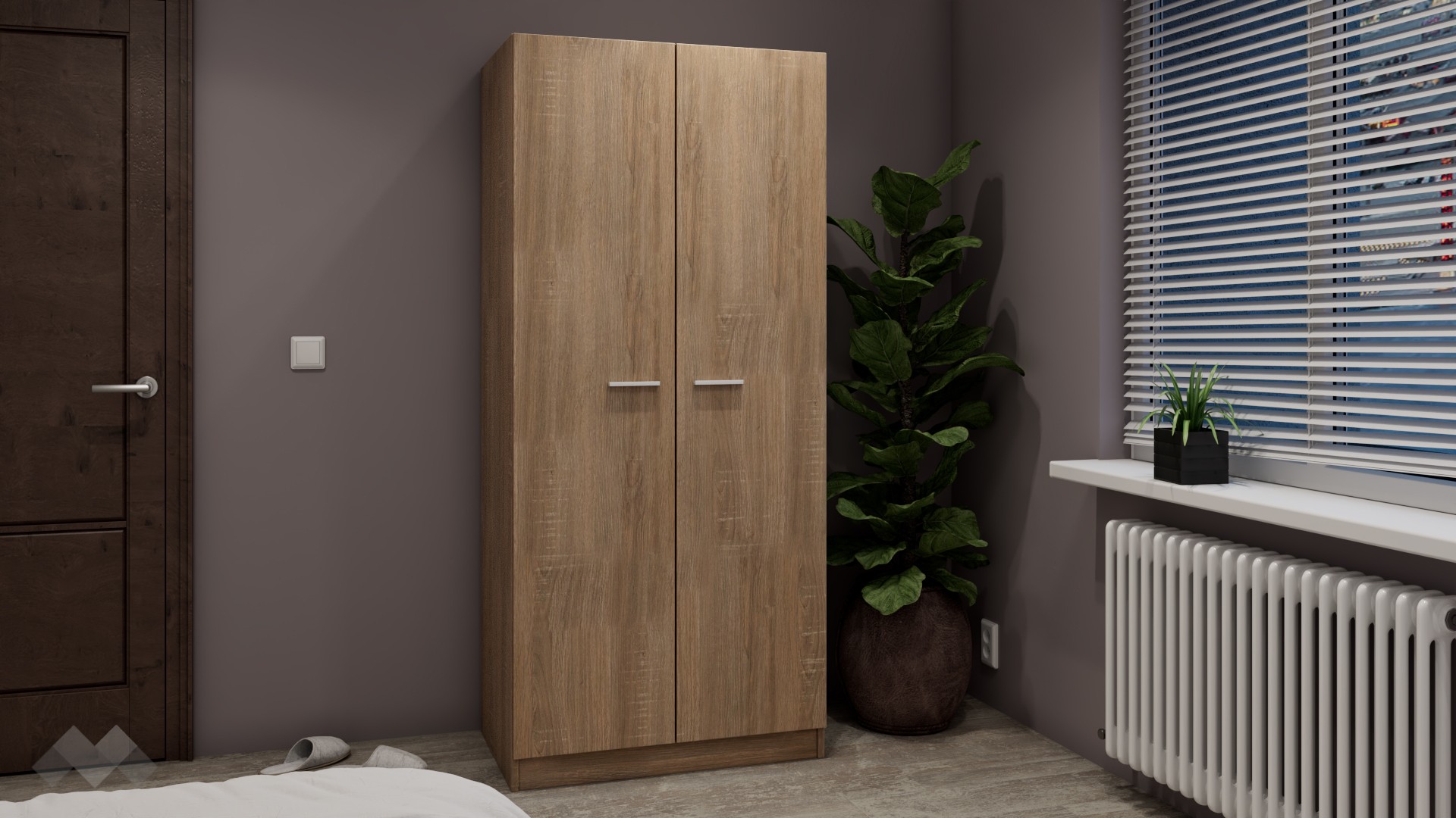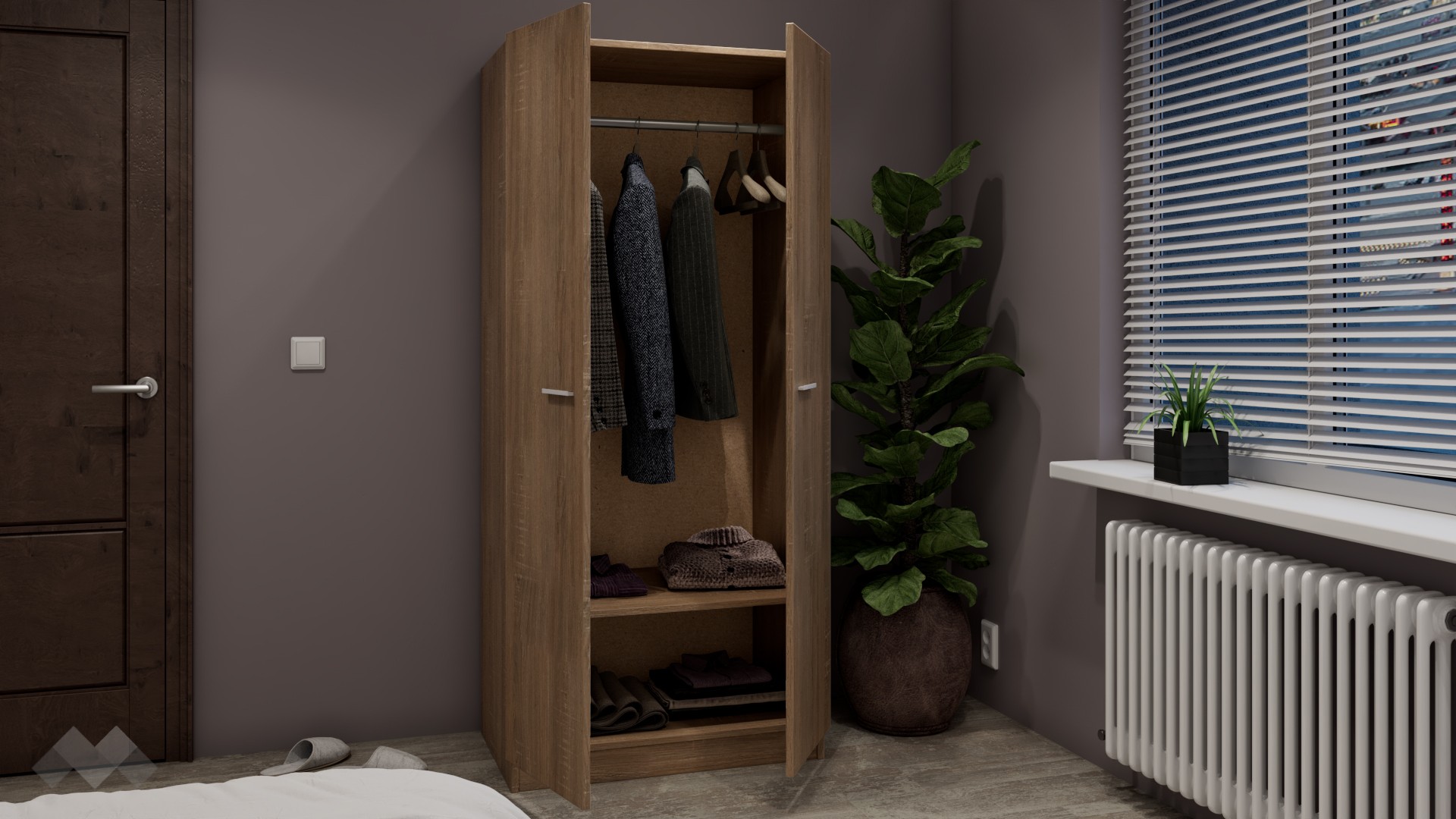 Двукрилният гардероб Арго е идеалното решение за твоята спалня, антре или като допълнителен шкаф за съхранение на твоите вещи. Той ще те впечатли с функционално разпределение, което ще ти позволи да подредиш добре всички дрехи и аксесоари. Благодарение на модерния му дизайн и неутрален цвят, този гардероб би се вписал във всеки интериор.