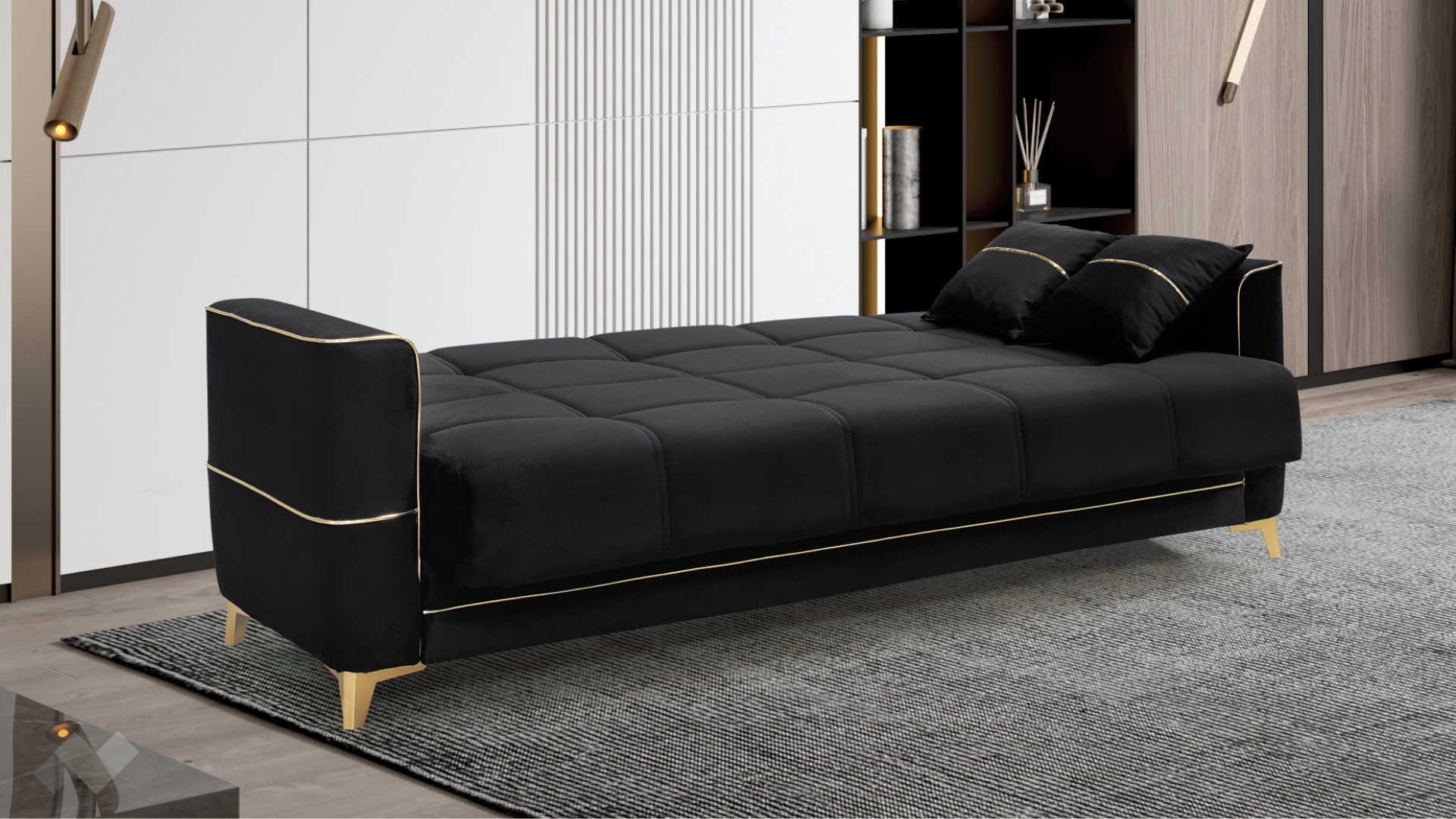Диван Астон впечатлява с елегантност, изчистени линии и стилна визия. Подлакътниците, обкантени с декоративен златен кант и крака в златно, в комбинация с фигуралните шевове по дамаската и умело подбрания ѝ цвят, го превръщат в истинско интериорно бижу.