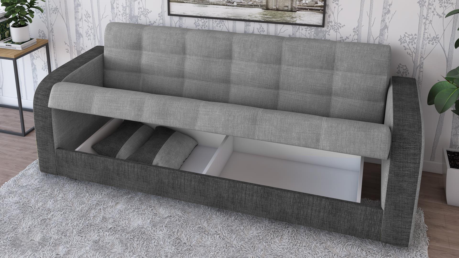 Освен че е комфортен, диван Бари е и многофункционален. С минимално усилие, за миг се превръща в широко легло, благодарение на клик-клак механизъм, а под седалката се крие просторна ракла, където да съхраняваш завивки, възглавници и други вещи. Дамаската е приятна на допир, изработена от здрав, устойчив на износване и замърсявания текстил.