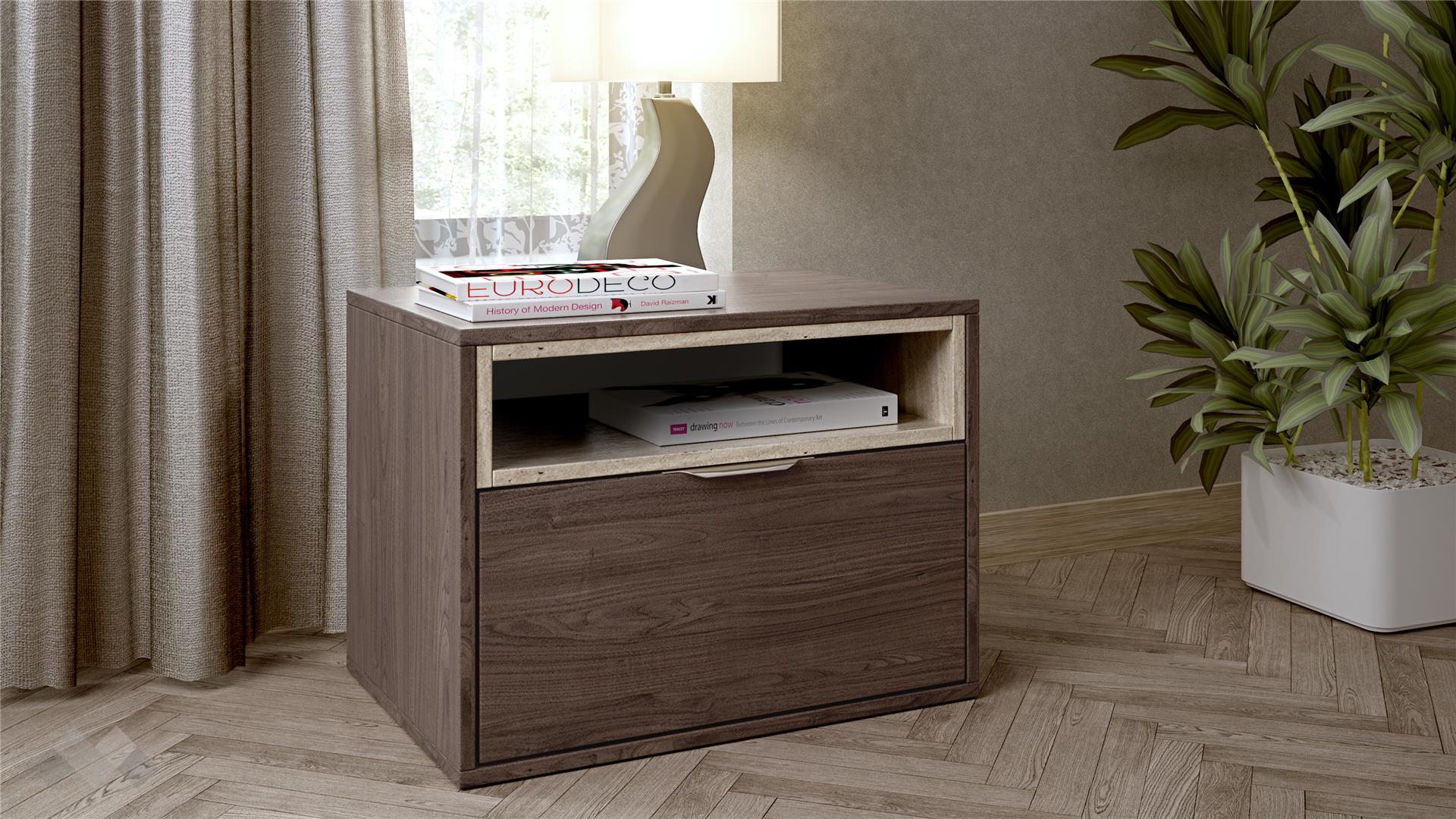 Нощният шкаф е с пефектна височина, пасваща на всяка спалня - така всичко поставено на плота е на една ръка разстояние. Има отворен рафт, в който можеш да поставиш книга и просторно чекмедже за всичко, което искаш да ти е под ръка.