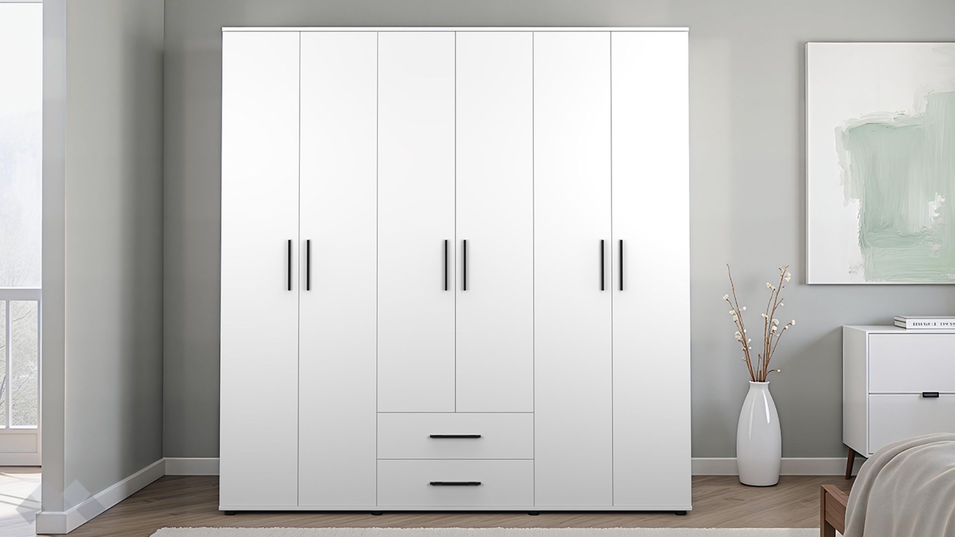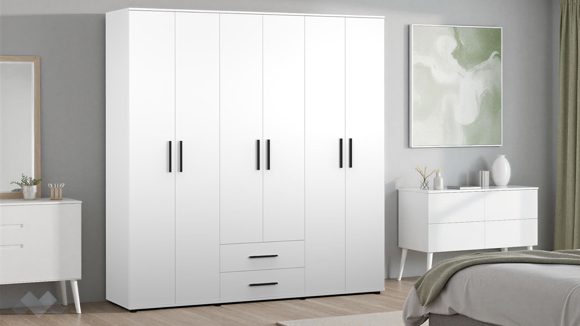 Ако търсиш повече пространство и отлична организация, шесткрилният гардероб Бланко е идеалният избор за твоя дом. С големия си капацитет и функционално вътрешно разпределение той предлага достатъчно място за дрехи, обувки и аксесоари, като допълва интериора с модерен стил.
