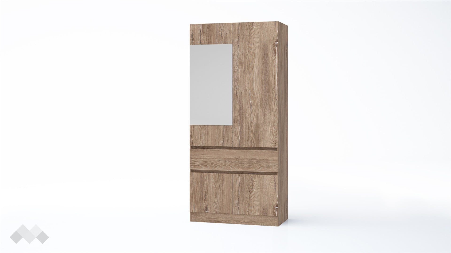⭐ Предимства: ✓ двукрилен ✓ чекмедже ✓ шкаф ✓ лост за закачалки ✓ огледало ✓ стилен декор ✓ механизъм за плавно затваряне ✓ качествена изработка ✓ 16 мм ПДЧ