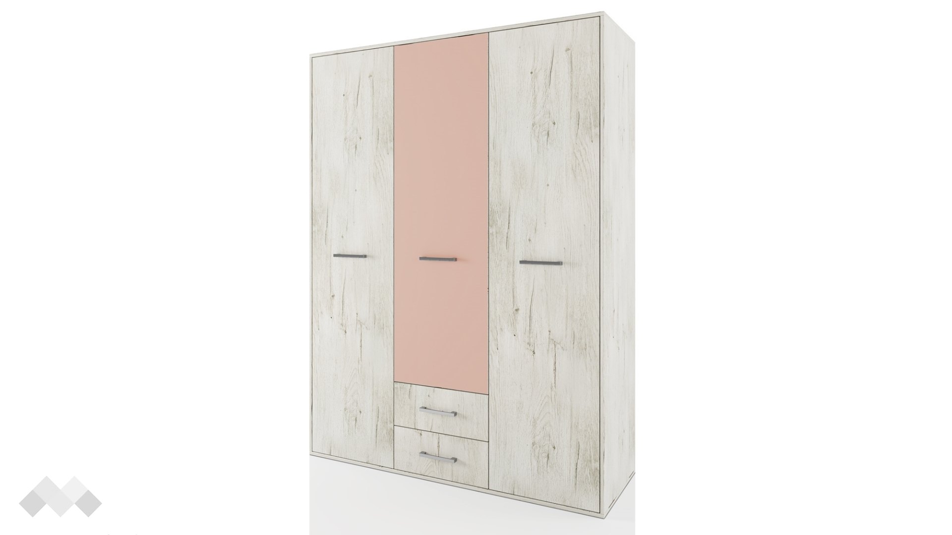 Конструкцията е изработена от здраво ПДЧ с дебелина 16 мм, лесно за почистване и поддръжка. Освен с функционалност, гардероб Бретани ще те очарова и с модерната си визия и приятна комбинация от светъл дъб пиемона с розова праскова, които създават усещане за свежест. Изчистените линии на гардероба го правят подходяща мебел както за традиционен, така и за по-модерен интериор. Благодарение на прецизната си изработка, гардеробът е стабилен и здрав и ще ти служи дълго.