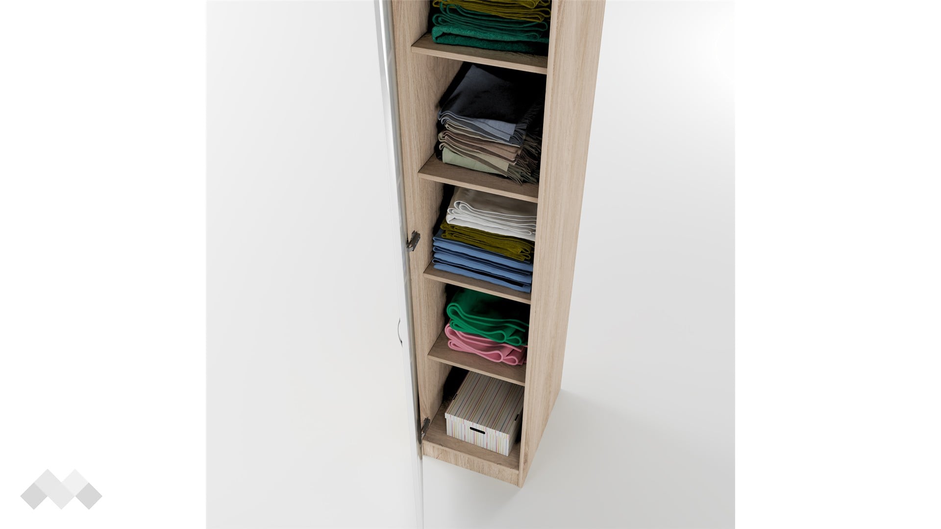 Щом отвориш вратата, ще откриеш рафтове, разположени на удобна височина, подходящи за съхранение на дрехи или за всякакви други вещи и аксесоари. Благодарение на компактните си размери и изчистен дизайн, гардеробът е подходящ не само за жилища, но и за офиси, хотели и стаи за гости. Заоблената дръжка добавя елегантен завършек на гардероба и ще ти предостави удобство при отварянето на вратата с лекота.
