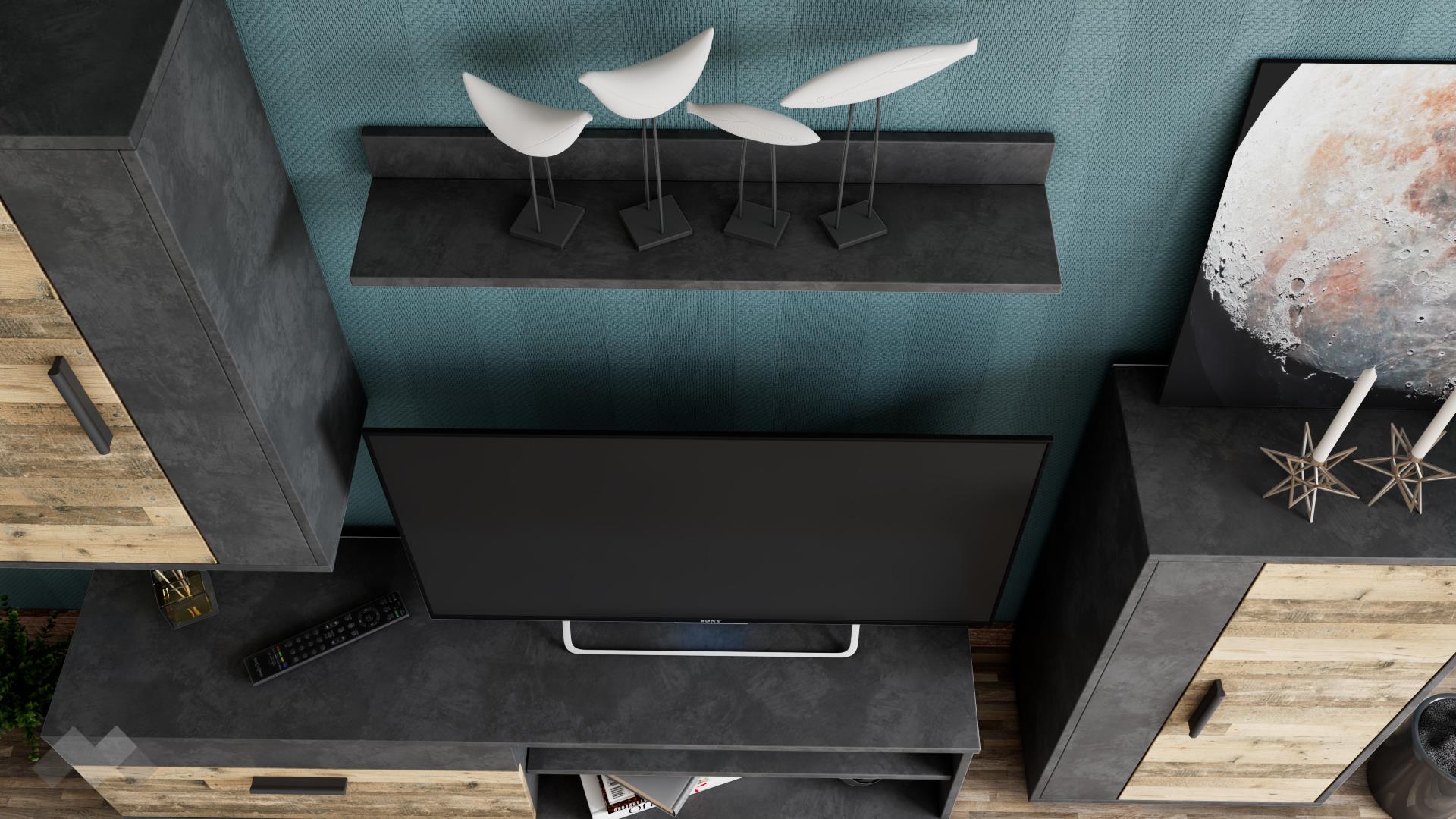 ⭐ Предимства: ✓ 2 отворени рафта ✓ ТВ шкаф ✓ висок шкаф ✓ окачен шкаф ✓ етажерка ✓ модерен дизайн ✓ функционална и практична ✓ качествена изработка ✓ 16 мм ПДЧ