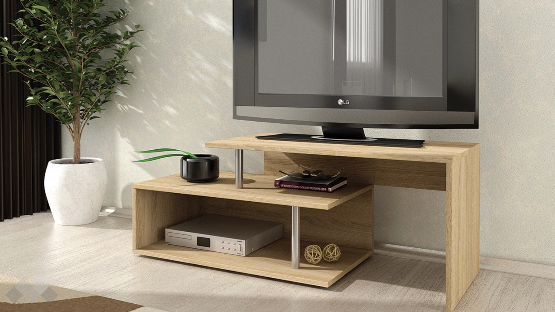 На твое разположение са отворен рафт и удобен плот, на който можеш да поставиш своя телевизор. Отворения рафт ти предоставя достатъчно пространство, където да поставиш цялата си съпътстваща техника като ТВ приемници, DVD плейъри и други.
