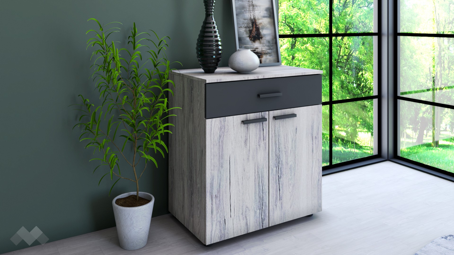 Скринът ти предлага 2 обемни шкафа с вратички и чекмедже. В него ще можеш да организираш цялата си козметика, малки ел. уреди или други вещи, от които се нуждаеш.