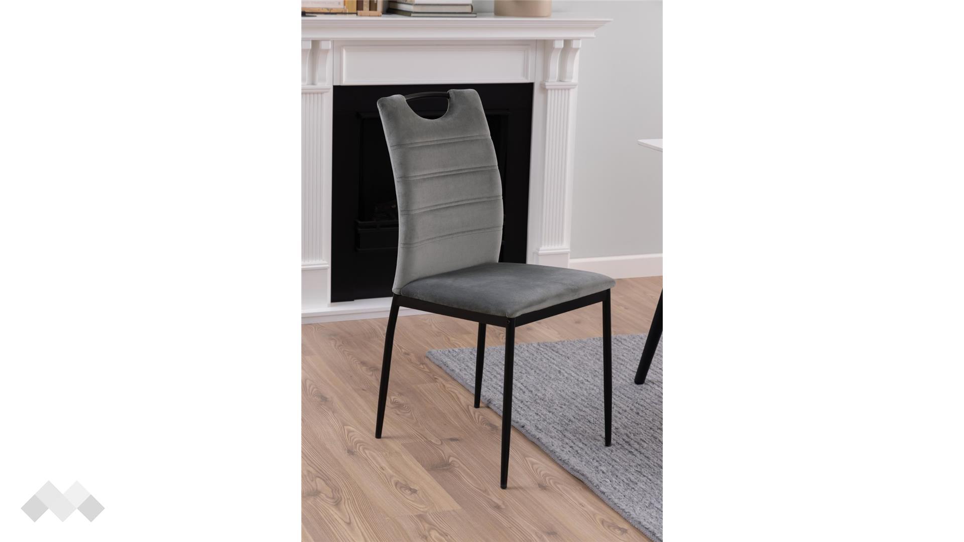 Трапезен стол Диа впечатлява със своя елегантен и модерен дизайн, който съчетава комфорт и естетика. Текстилната дамаска е мека и устойчива, осигуряваща приятно усещане при седене.