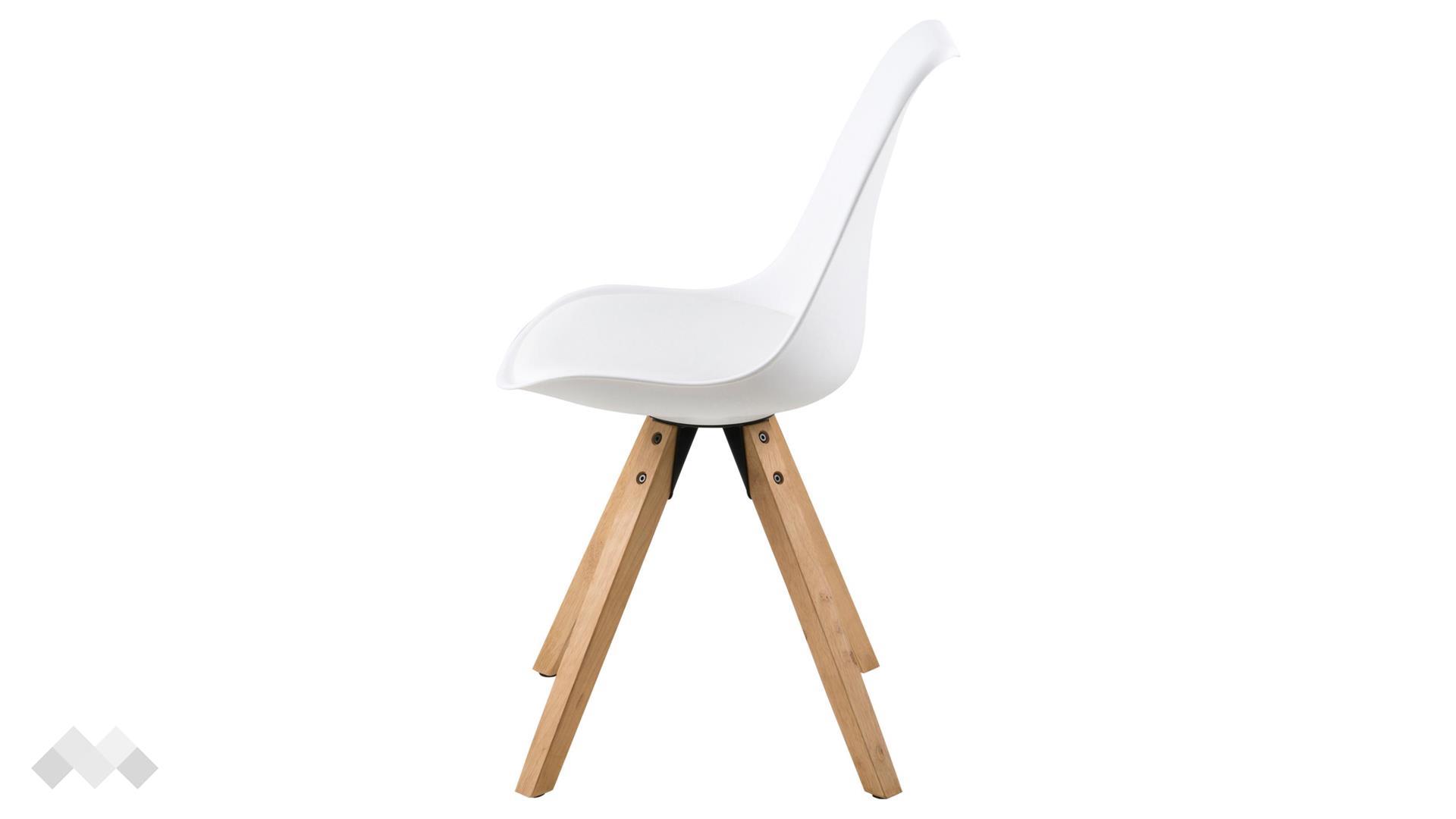 Седалката на стола е проектирана да осигурява стабилна опора, а фиксираната възглавница допринася за приятно изживяване при сядане. Здравата дървена основа с лакирано покритие гарантира устойчивост и допълва скандинавския стил на дизайна.