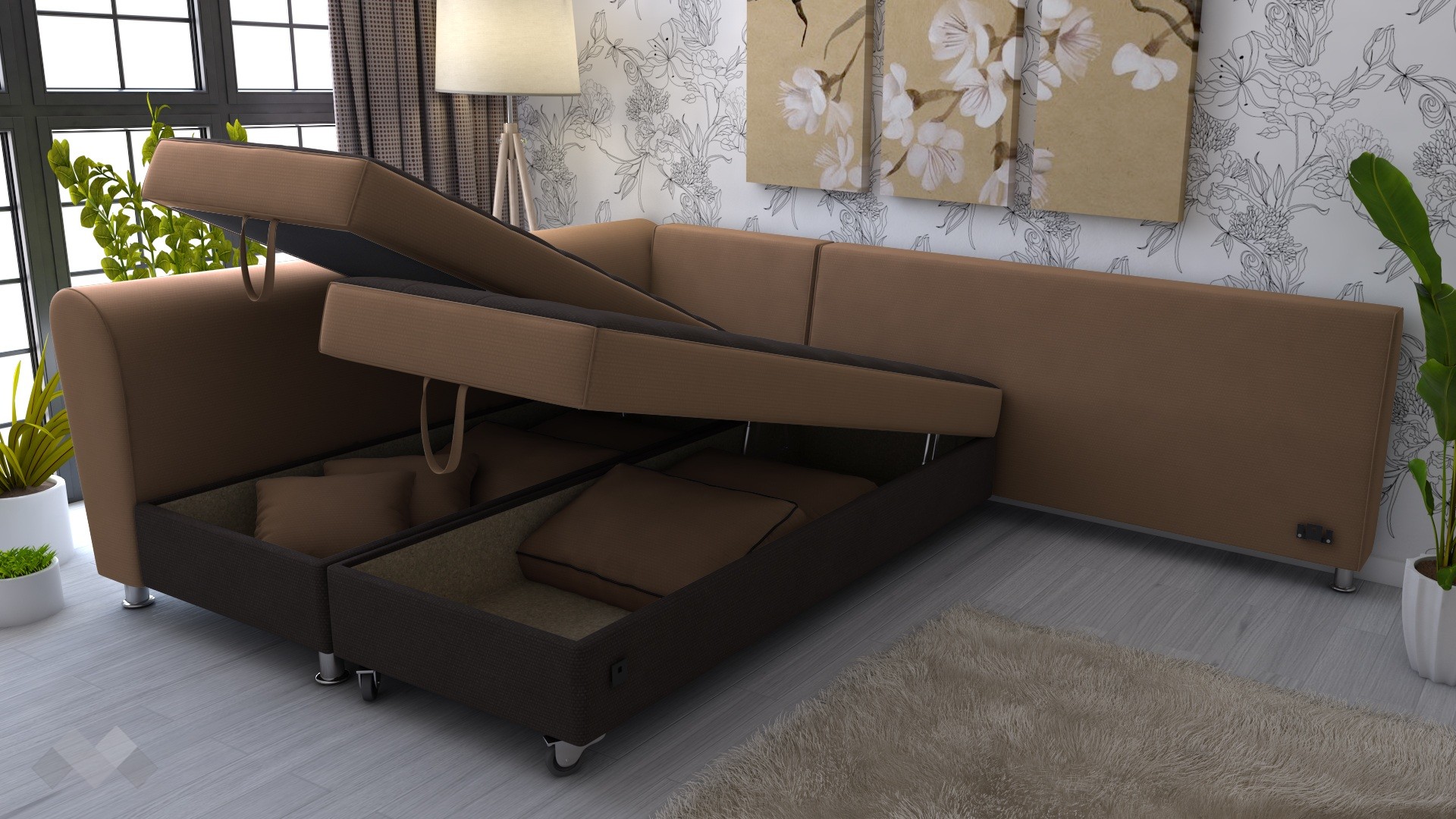 Можеш да го използваш като две ъглови легла, където да си почиваш. Двете части на дивана са с вградени матраци със средна твърдост, което ги прави удобни и достатъчно големи дори за ежедневно спане. Ако пък се нуждаеш от по-голяма спална площ, достатъчно е да завъртиш едната част на дивана и той се превръща в просторна спалня с размери 140/191 см. Под лежанките са скрити две големи, просторни ракли за съхранение на вещи.