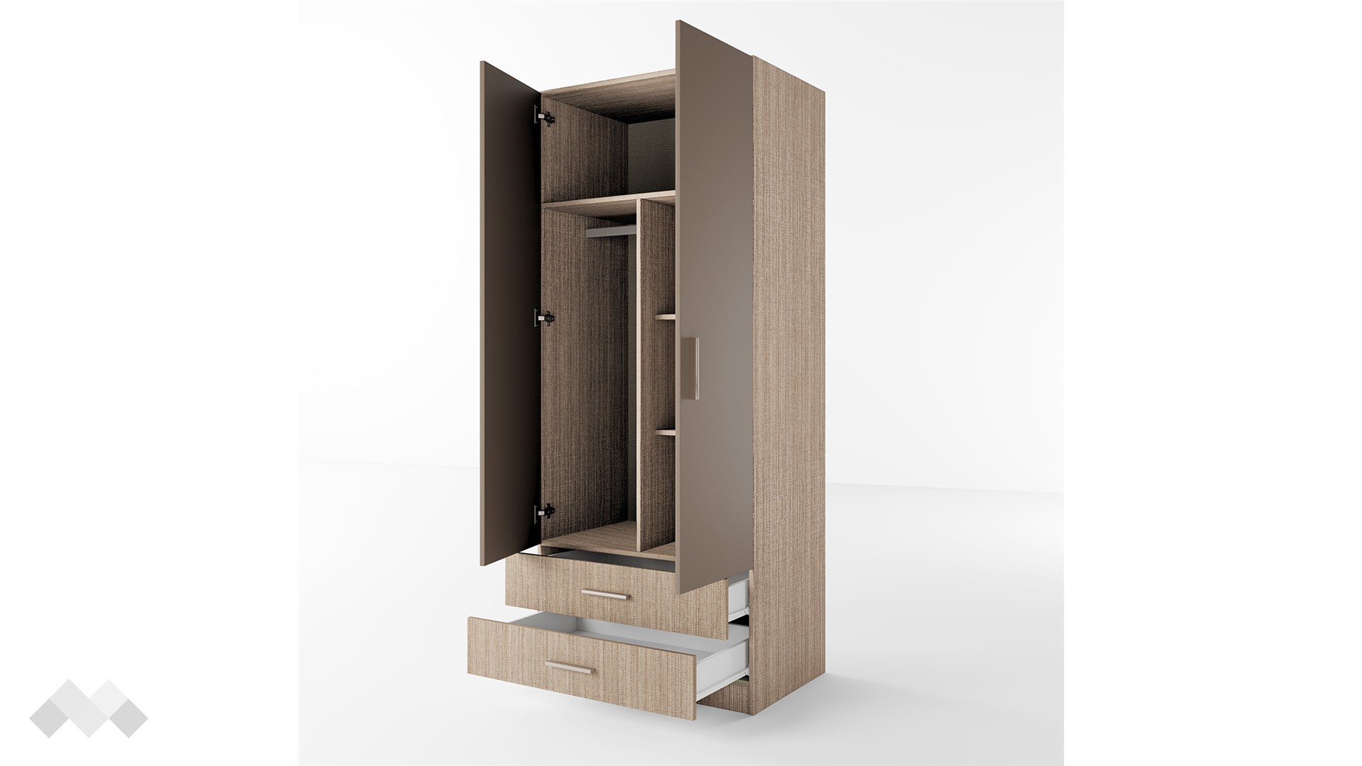 Благодарение на практичното разпределение на вътрешното пространство, с лекота ще можеш да организираш и съхраняваш дрехите си, като същевременно ще имаш бърз достъп до всеки тоалет. В широките две чекмеджета е удобно да съхраняваш бельо, чорапи или други аксесоари. Комбинацията от рафтове и лост за закачалки ти дава възможност да организираш дрехите си по най-удобния за теб начин.