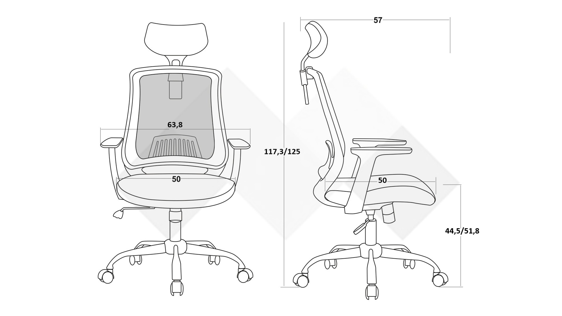 Д: 57 см. Ш: 63,8 см. В: 125 см.