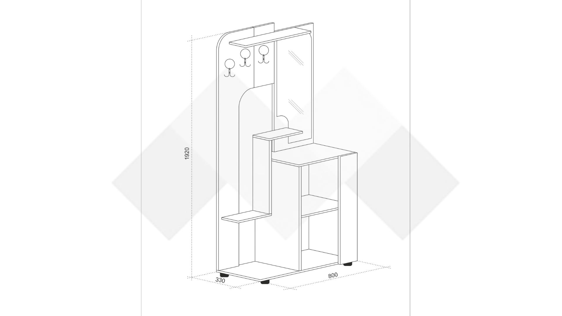 Разполага със широк шкаф, удобен да организираш всичките си обувки, практичната етажерка до него е мястото за всички дребни вещи, които е важно да не забравяш, когато излизаш или пък за украса акцент. Истински ще ти допадне голямото огледало, което ще направи коридора ти по-светъл и ще ти помогне да доизпипаш тоалета си преди излизане. На паното са монтирани три закачалки удобни за якета, палта, шалове или чанти. На рафтчето над тях може да поставиш малки кутии или по-обемни дрехи. В долната част има отворена поставка за обувките, които искаш да са прибрани, но и винаги под ръка в забързаното ежедневие.
