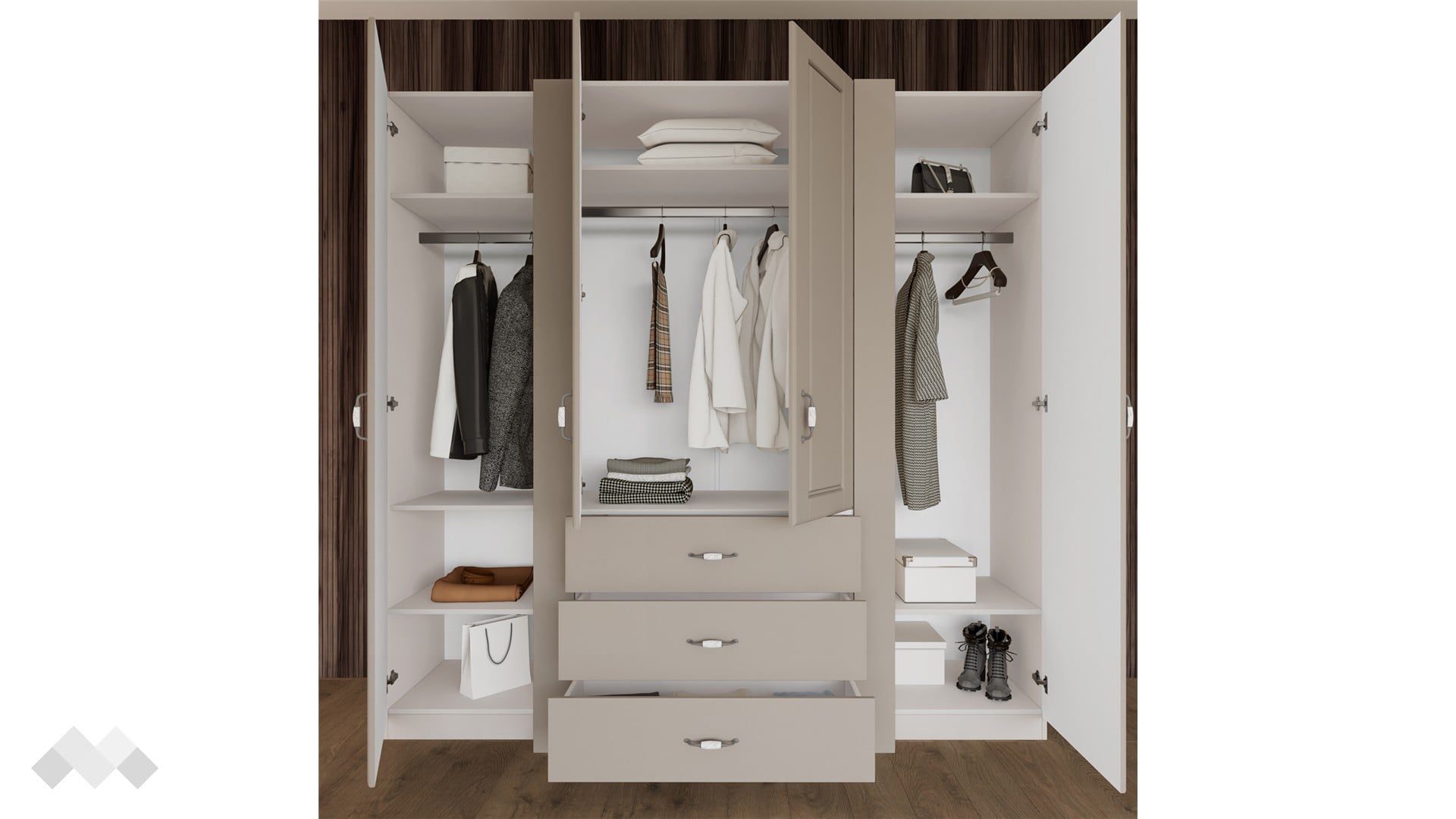 Представяме ти четирикрилен гардероб Еридан, който е създаден с много усет към естетиката и детайла. Модерният дизайн на модела се отличава с изчистени линии, минимализъм и функционалност.