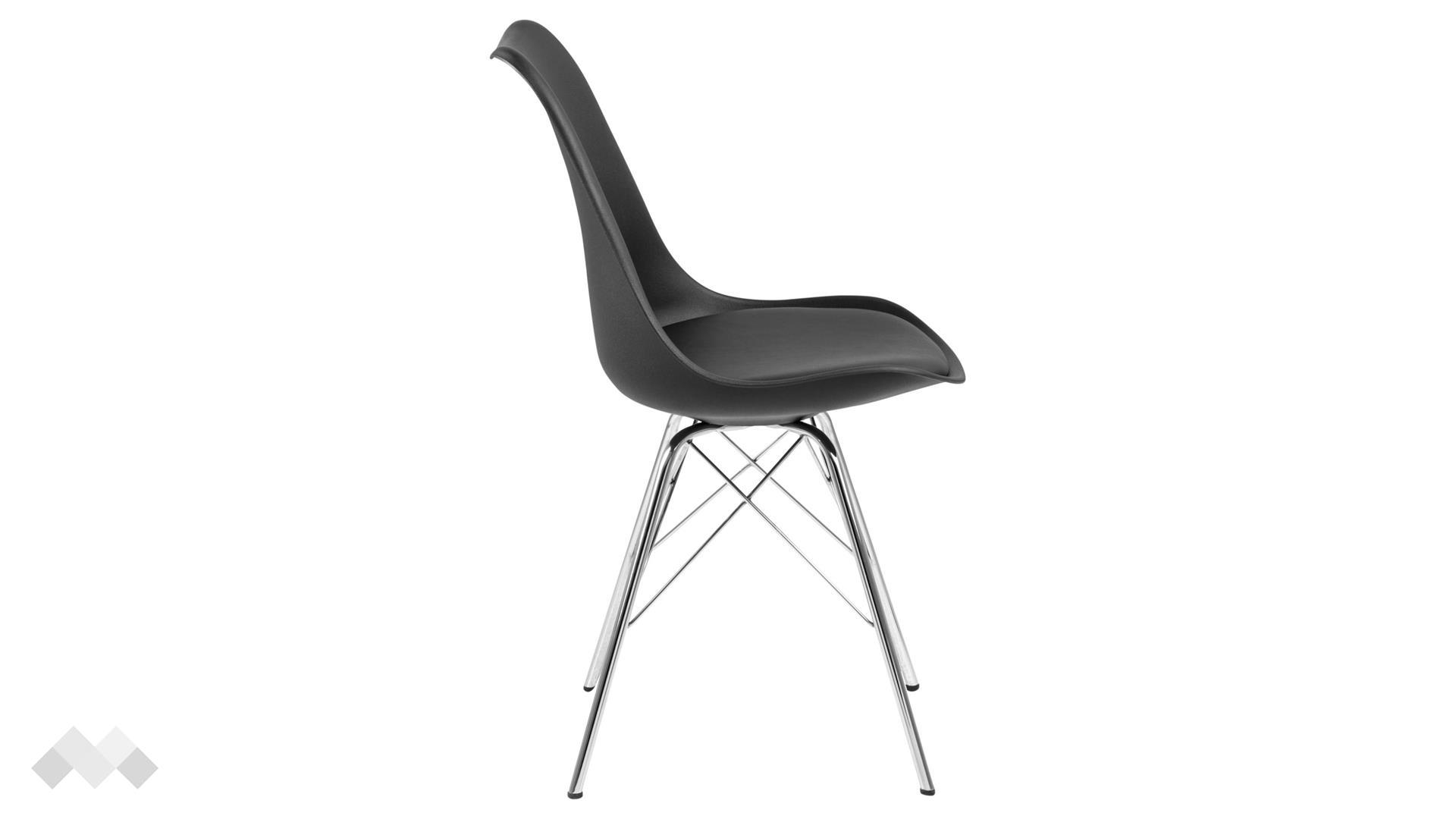 Седалката на стола е с ергономична форма, която перфектно следва извивките на тялото, предоставяйки комфорт при дълги хранения. Възглавничката от изкуствена кожа добавя мекота и улеснява почистването, а металните крака осигуряват стабилност и допълват елегантния вид.