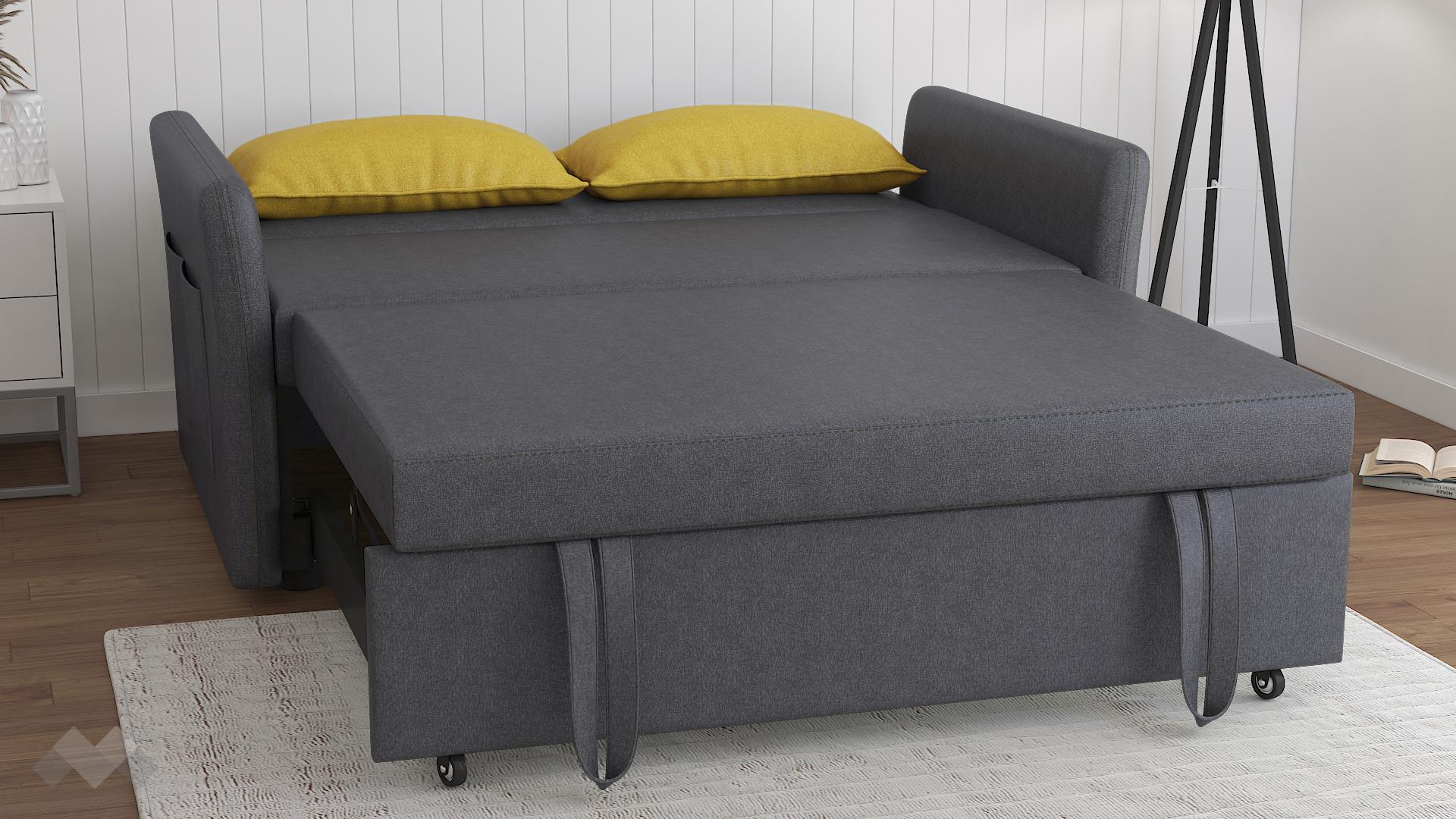 С едно издърпване активираш функцията сън и диванчето се превръща в легло за двама. Механизмът е изключително лесен за ползване благодарение на ламелната рамка на колелца и вече разполагаш с площ за сън с размери 118/180 см.