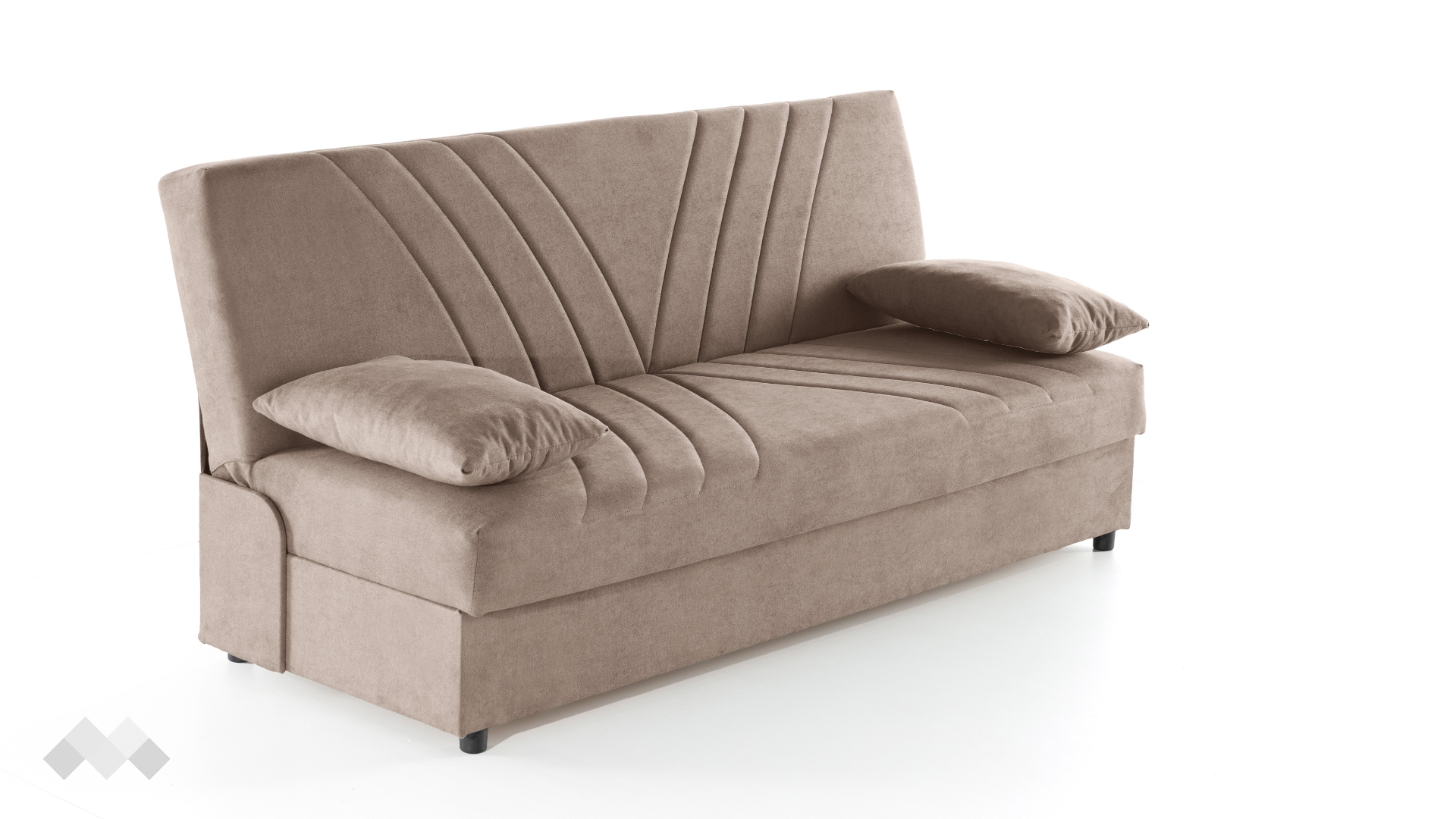 Подлакътниците са оформени с меки възглавници, които можеш лесно да премахнеш, когато имаш нужда от повече място. Така канапето бързо се адаптира според нуждите – независимо дали искаш да се изтегнеш с книга в ръка или да предложиш допълнително място за сядане. Под седалката се намира просторна ракла, идеална за съхранение на завивки, възглавници и други вещи, които искаш да държиш подръка, но скрити от погледа.