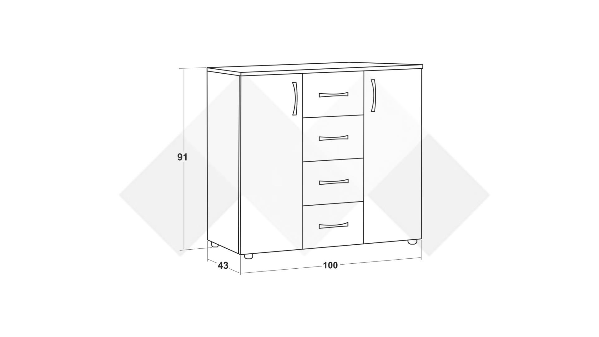 На твое разположение са четири чекмеджета и два затворени шкафа, в които можеш да организираш дрехи, бельо, аксесоари или други необходими за теб неща. Горният плот е чудесно място за подреждане на декорации, книги, козметика или други вещи, които искаш да ти бъдат винаги под ръка. Добави подходящо огледало над скрина и вече разполагаш с елегантна тоалетка - незаменим помощник в ежедневието. За допълнително удобство, вратите на шкафовете са снабдени с механизми за плавно затваряне.