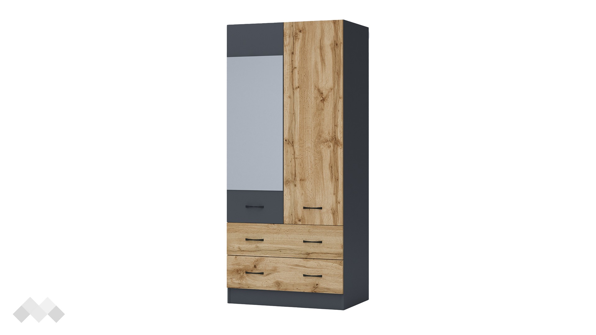 ✓ двукрилен ✓ 2 чекмеджета ✓ лост за закачалки ✓ огледало ✓ модерен декор ✓ практично разпределение ✓ качествена изработка