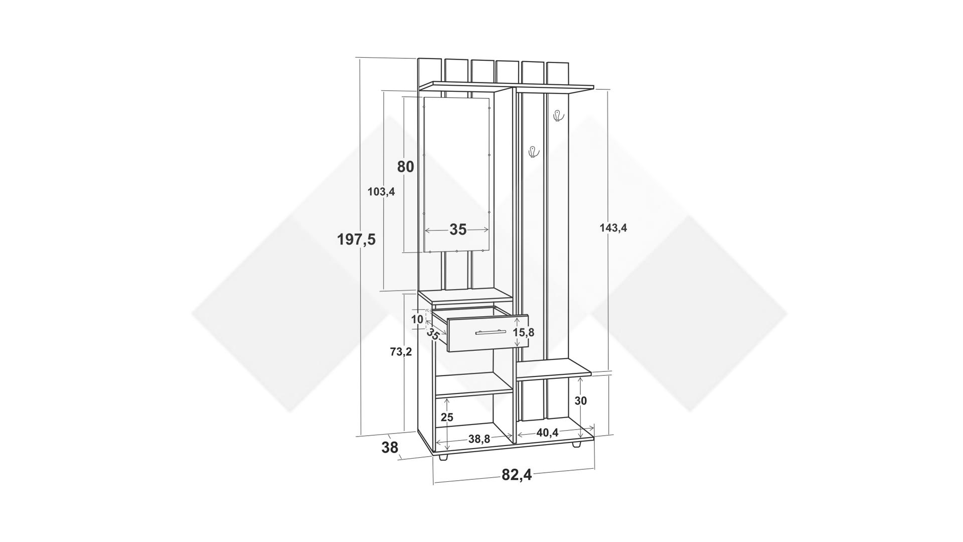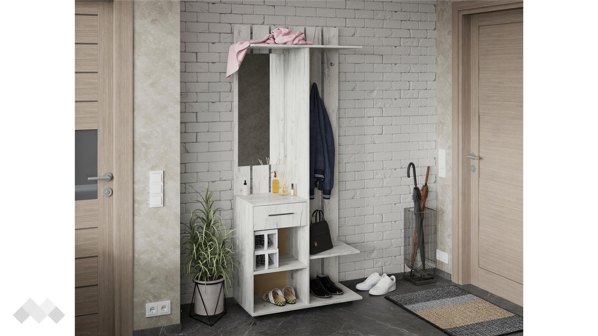 Портманто Галеон ти предлага оптимално пространство за твоите вещи като: връхни дрехи, шапки, обувки, козметика и чадъри. Благодарение на чекмеджето и допълнителните рафтове под него, разполагаш с достатъчно място за организация на всякакви вещи и дреболии.