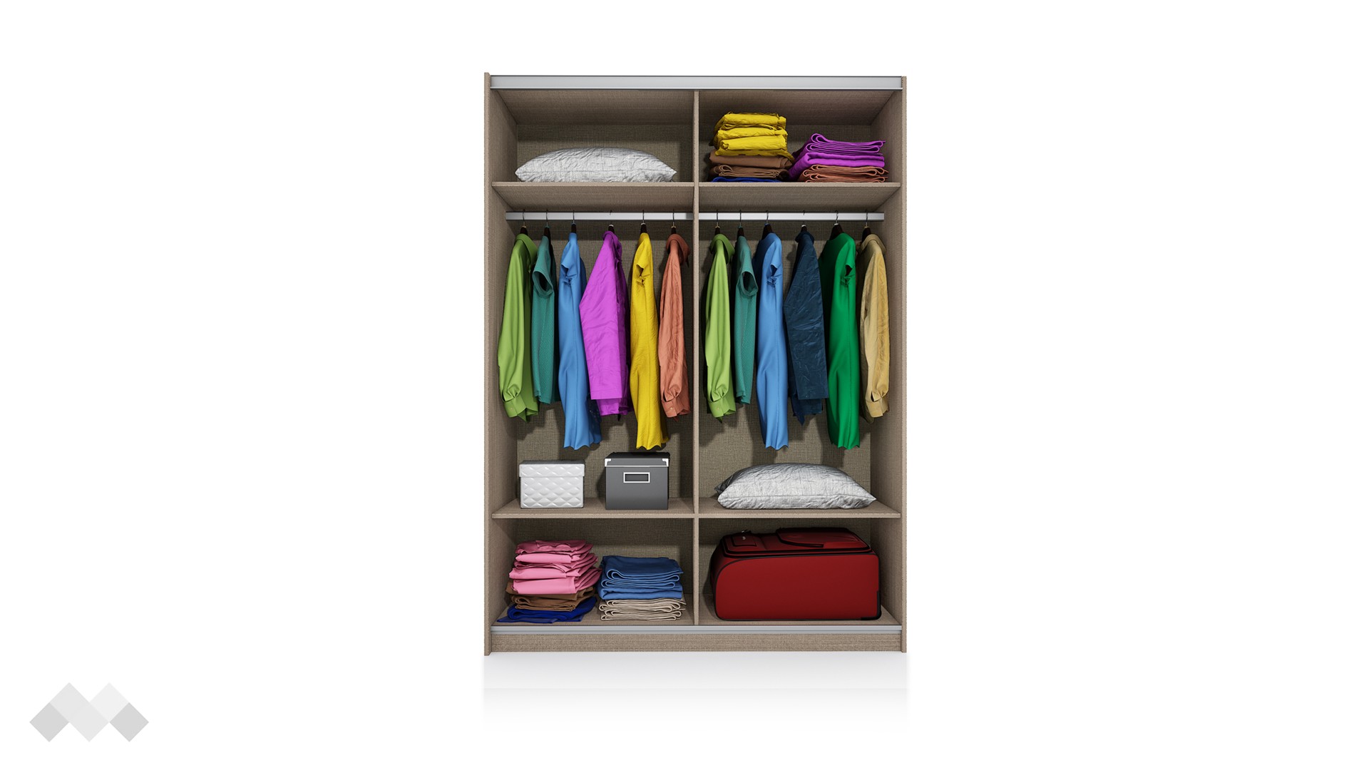 Гардероб Хартфорт е с плъзгащи врати. Това го прави подходящ избор дори за най-малките спални, тъй като за отварянето им не се нуждаеш от допълнително пространство. В същото време дълбочината на гардероба позволява съхранение и на по-обемни вещи. На твое разположение са общо четири рафта и два лоста за закачалки. На рафтовете можеш да подредиш сгънати дрехи, завивки, възглавници, аксесоари, куфари или други необходими за теб неща. Лостовете за закачалки са идеални за организиране на палта, по-обемни връхни дрехи или елегантното облекло, което се мачка много лесно.