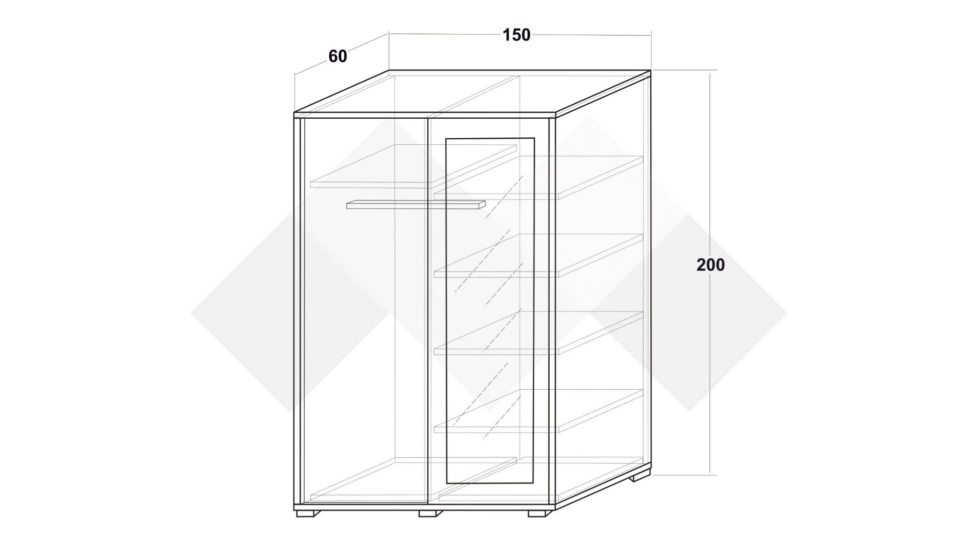 Д: 150 см Ш: 60 см В: 200 см