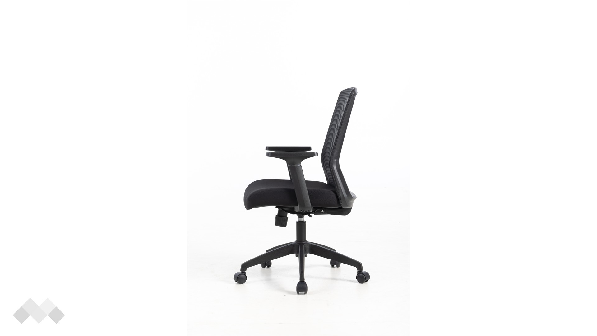 Мрежестата облегалка поддържа добра вентилация и осигурява стабилна опора за гърба, без да създава усещане за тежест. Височината на седалката се регулира, позволявайки лесно да адаптираш стола към височината на бюрото си.