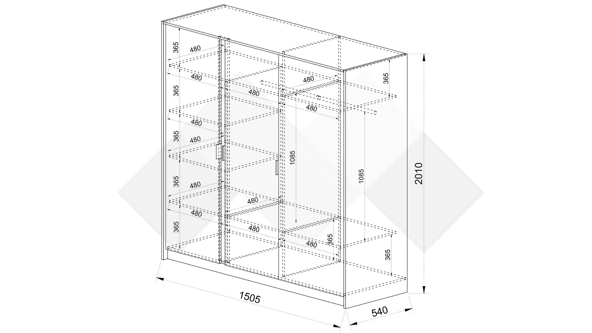 ✓ трикрилен ✓ 7 рафта ✓ 2 лоста за закачалки ✓ механизъм за плавно затваряне ✓ модерен декор ✓ практично разпределение ✓ качествена изработка ✓ 16 мм ПДЧ