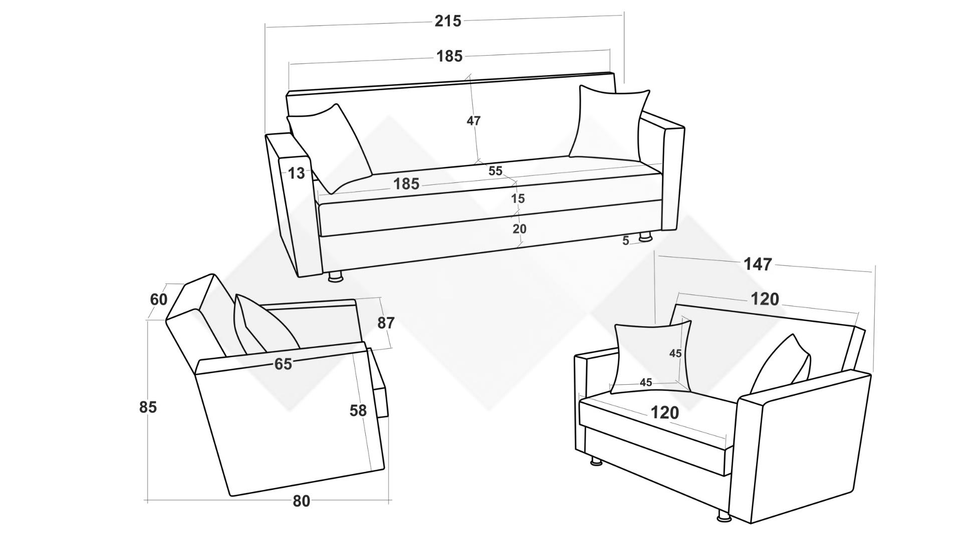 Триместен диван: Д: 215 см Ш: 80 см В: 85 см