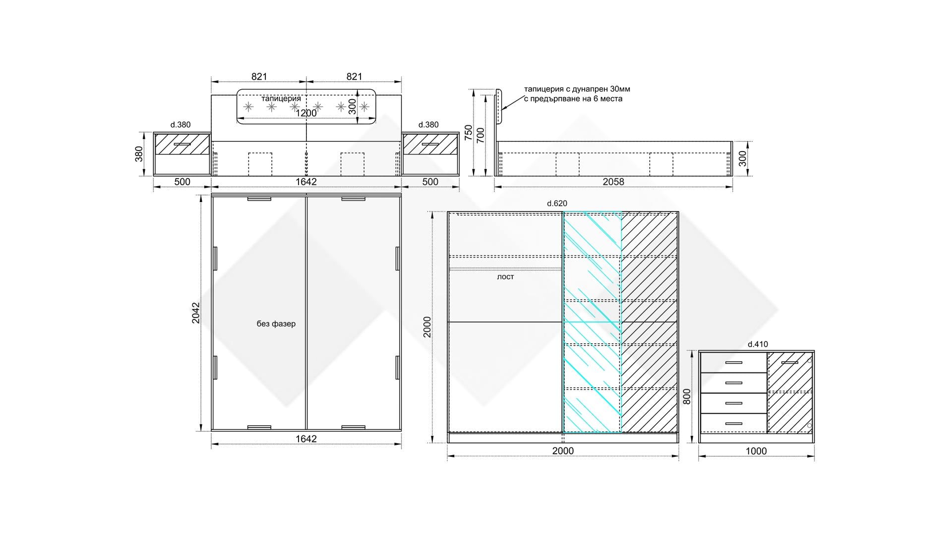Спалня: Д: 205.8 см Ш: 164.2 см В: 75 см