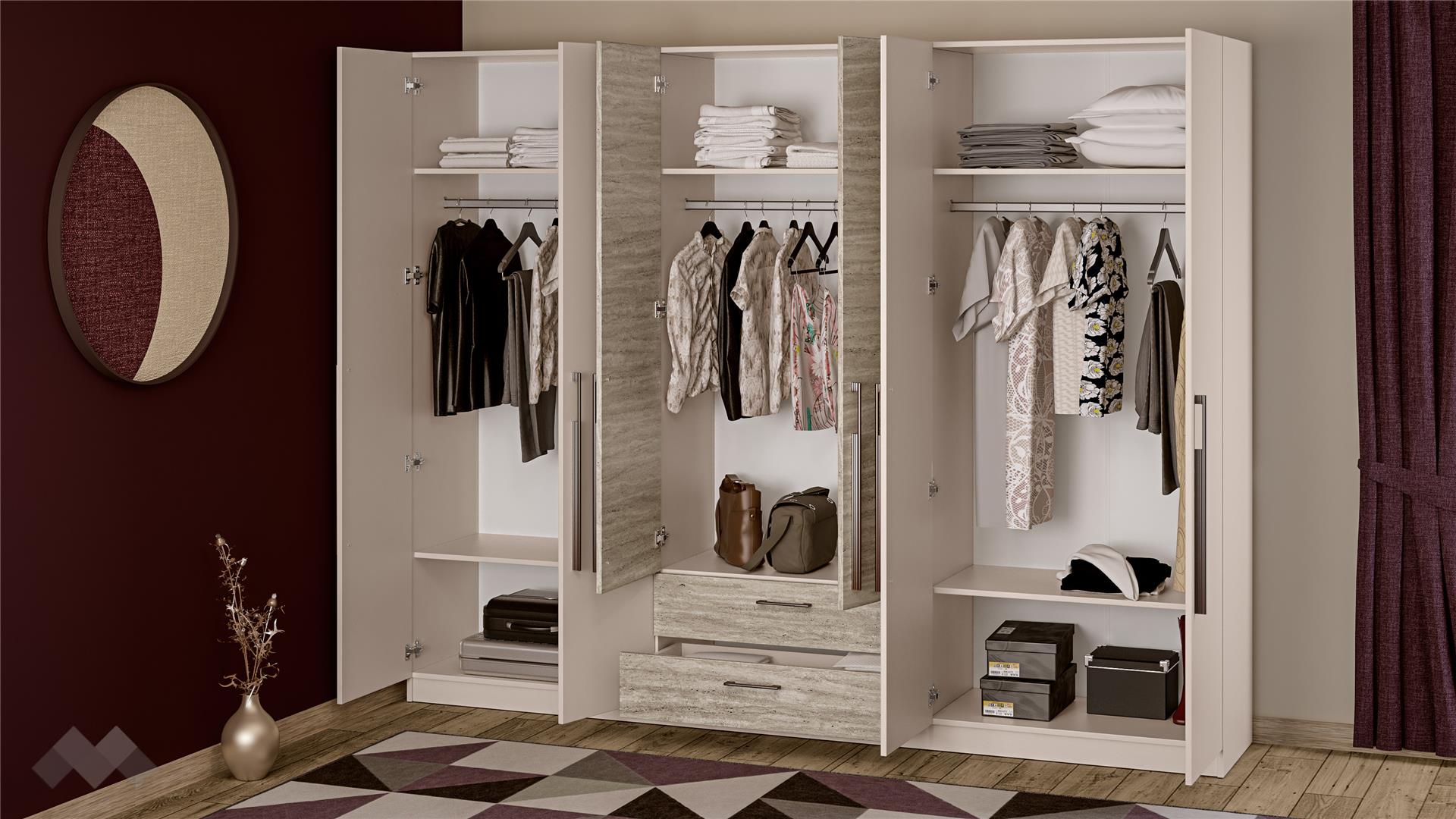 ✓ 18 мм ПДЧ ✓ шесткрилен ✓ 5 рафта ✓ 3 лоста за закачалки ✓ 2 чекмеджета ✓ плавно затваряне на вратите ✓ модерен декор ✓ качествена изработка