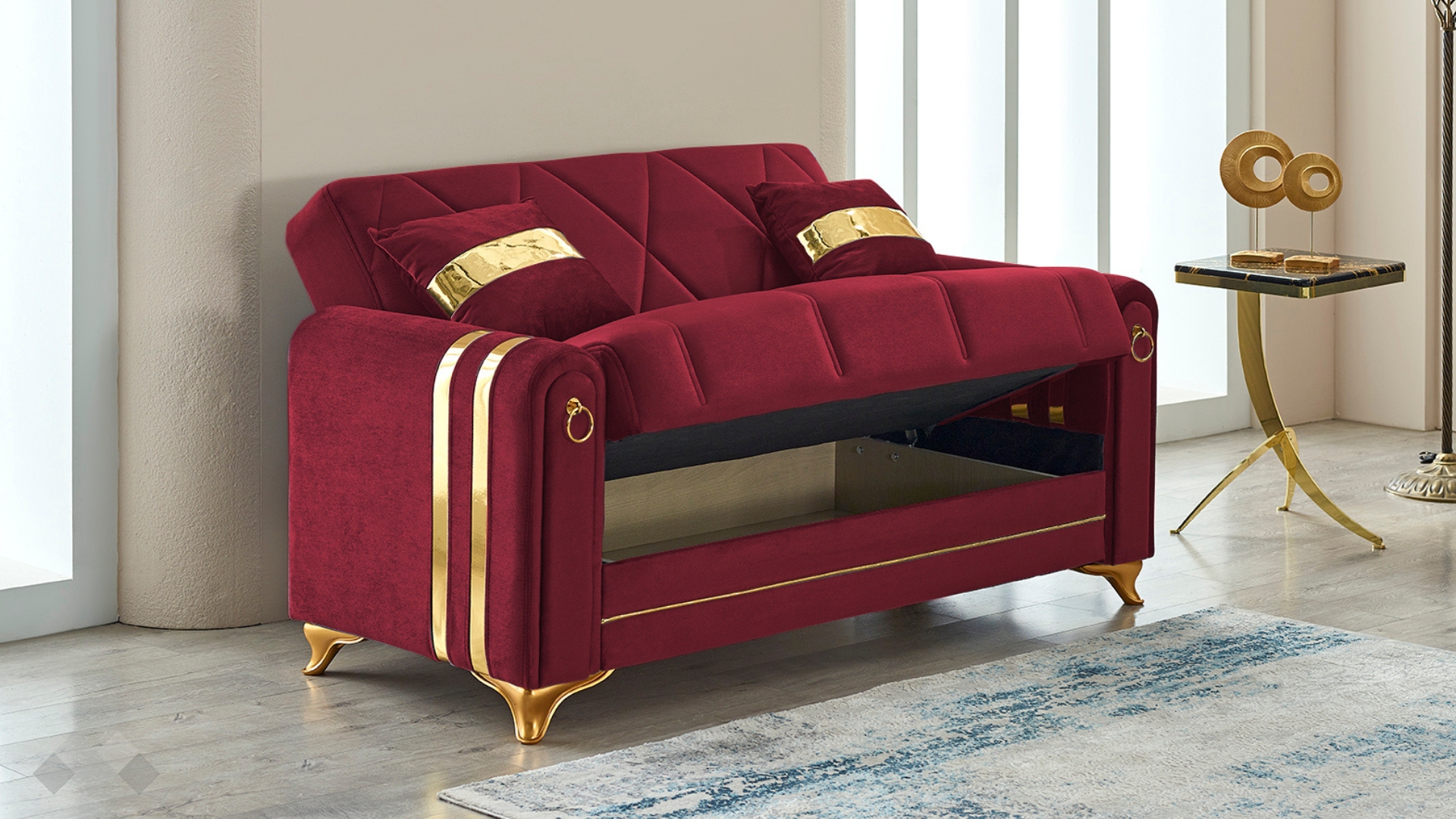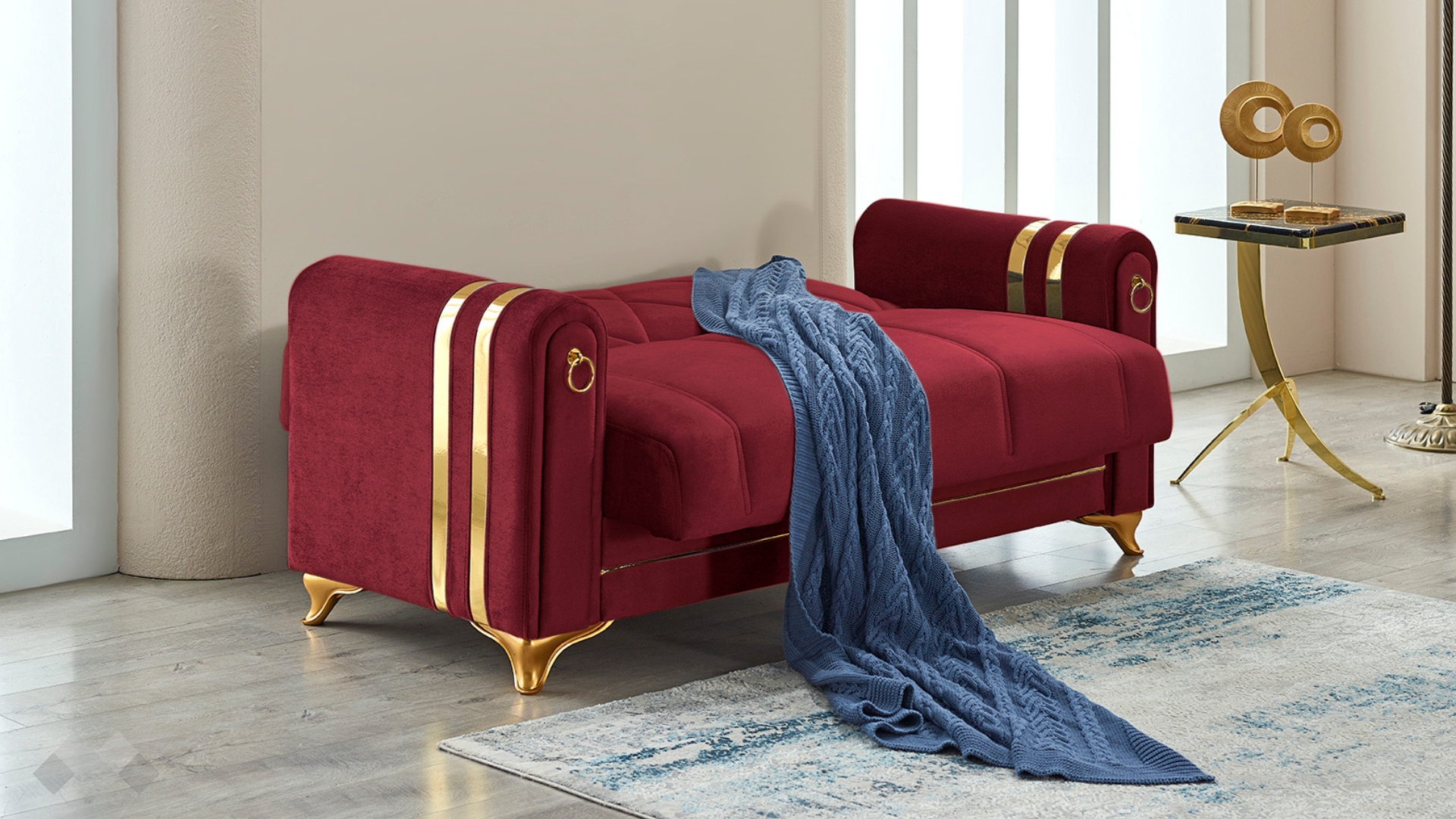 Диван Клара впечатлява с елегантност, изчистени линии и стилна визия. Извитите подлакътници, обкантени вертикално с декоративен кант и крака в златно, в комбинация с фигуралните шевове по дамаската и умело подбрания ѝ цвят, го превръщат в истинско интериорно бижу.