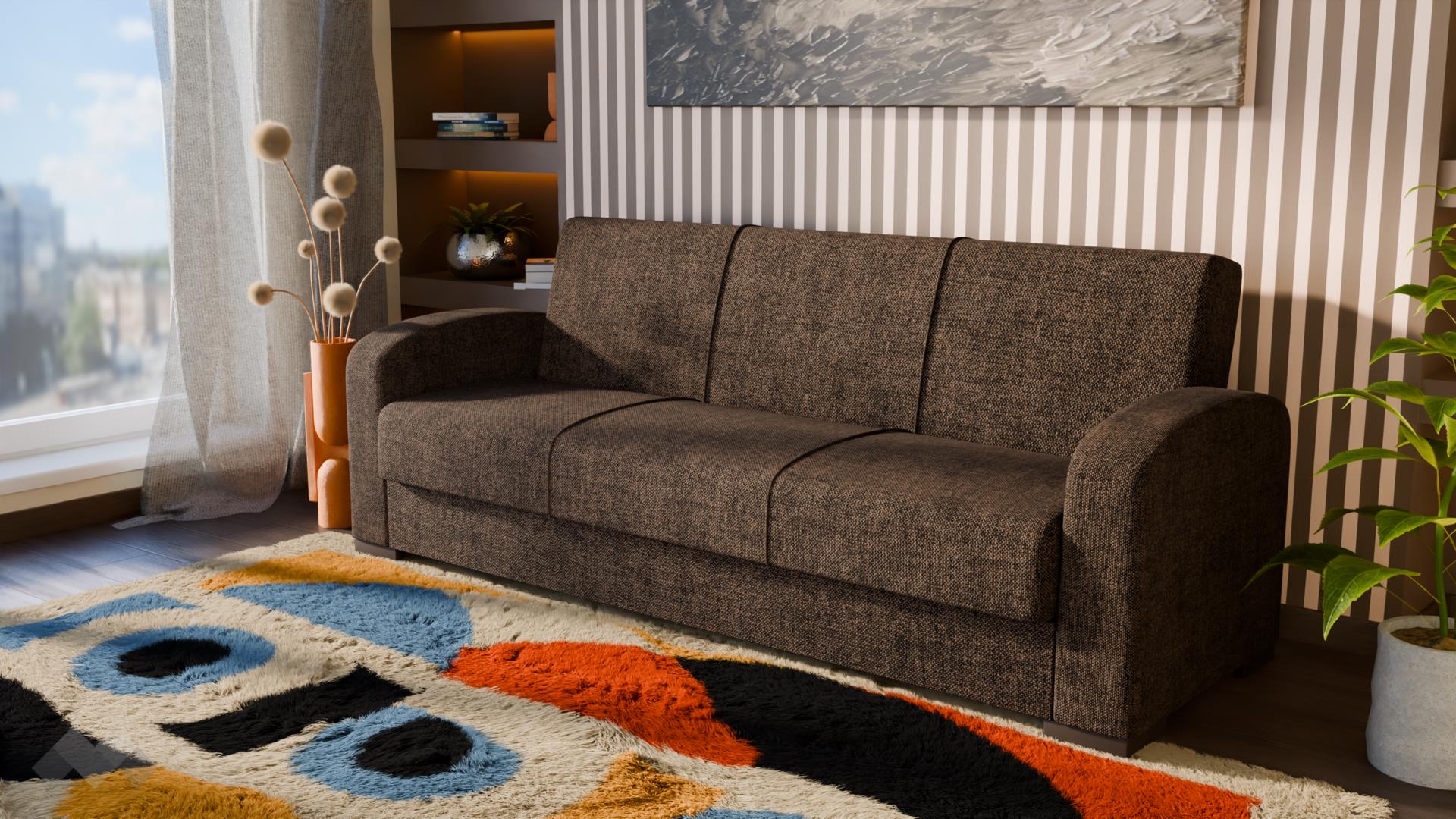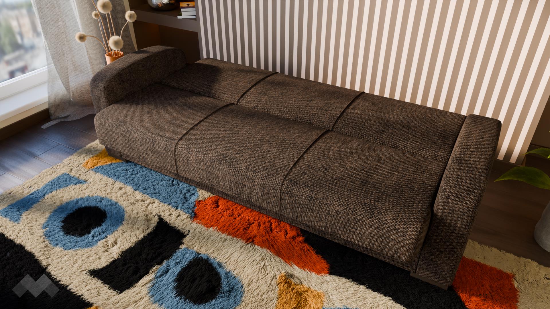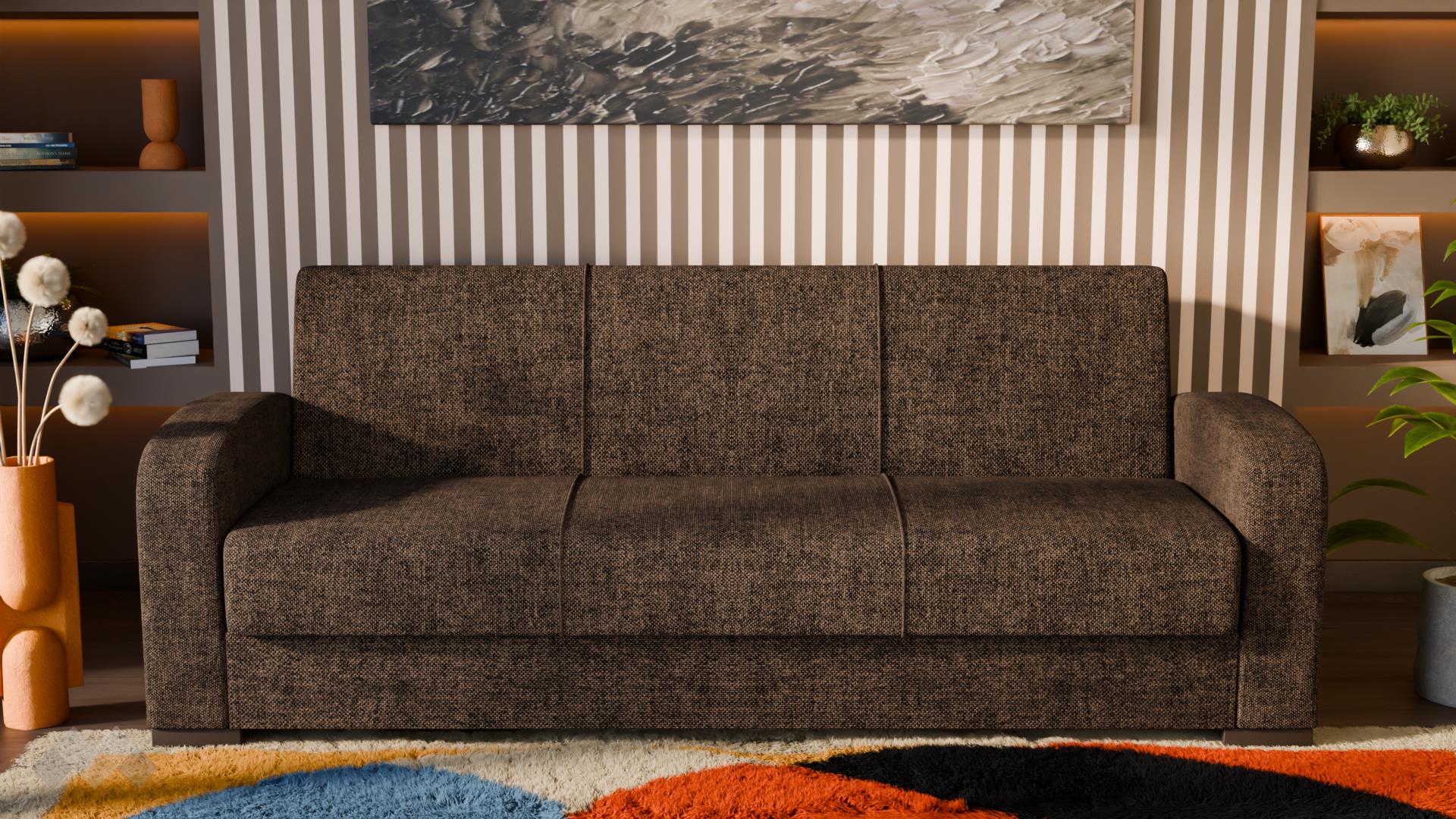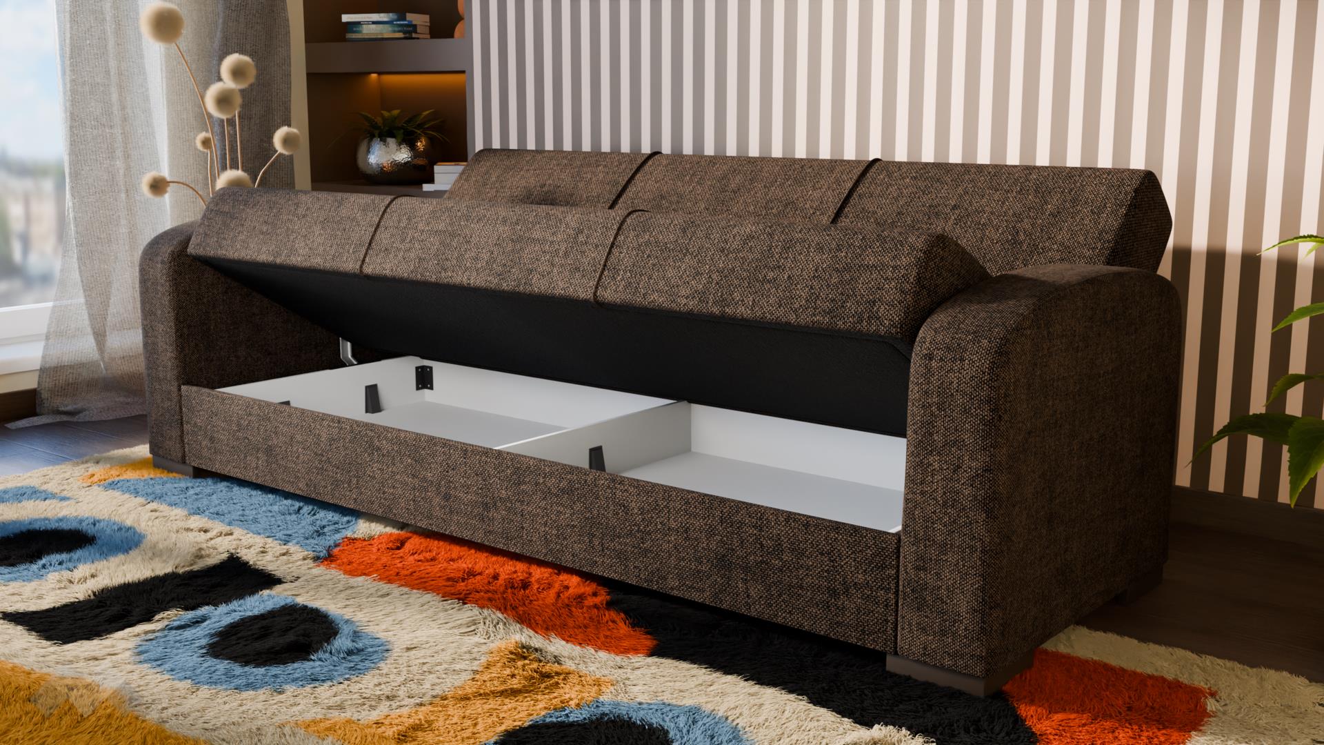 Диванът разполага с функция сън с размери 105/190 см, благодарение на надежден клик-клак механизъм, който позволява бързо и лесно превръщане в удобно легло - практично решение за гости или ежедневно използване. Допълнително предимство е вградената ракла за съхранение, идеална за спално бельо, одеяла и възглавници.