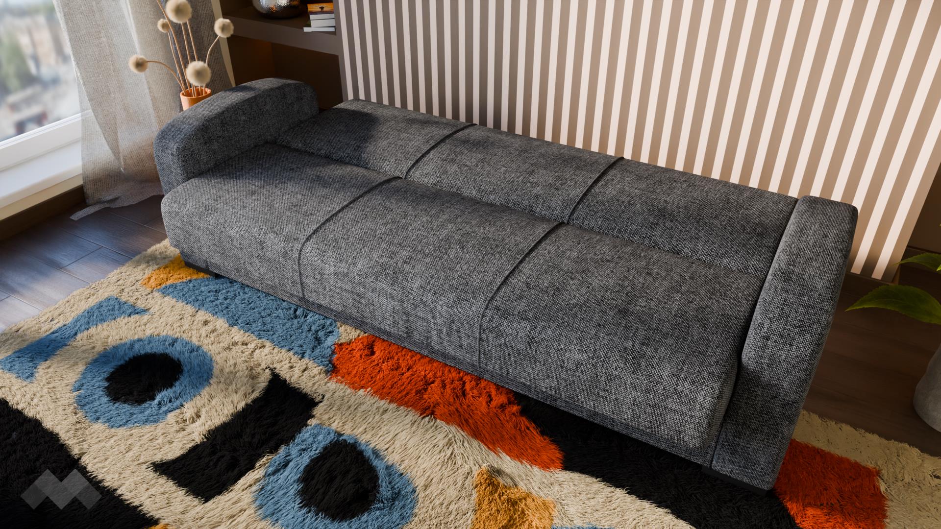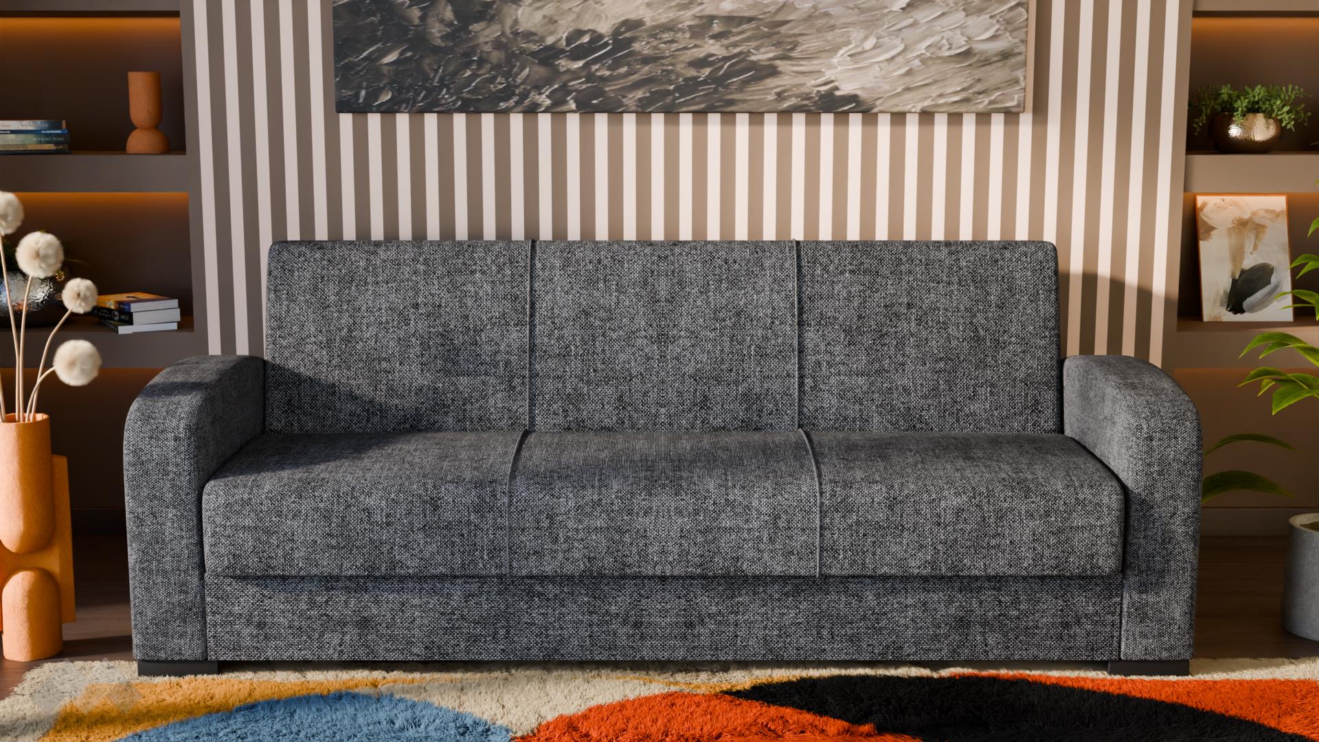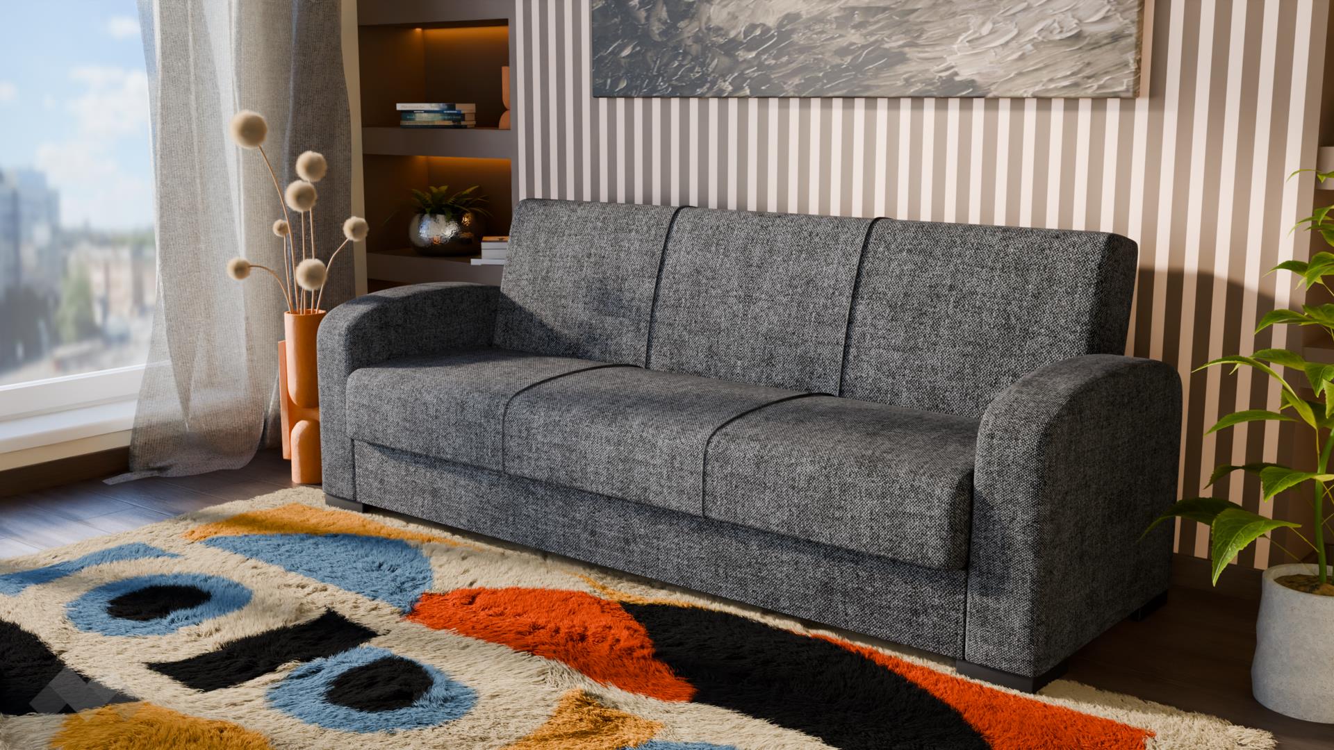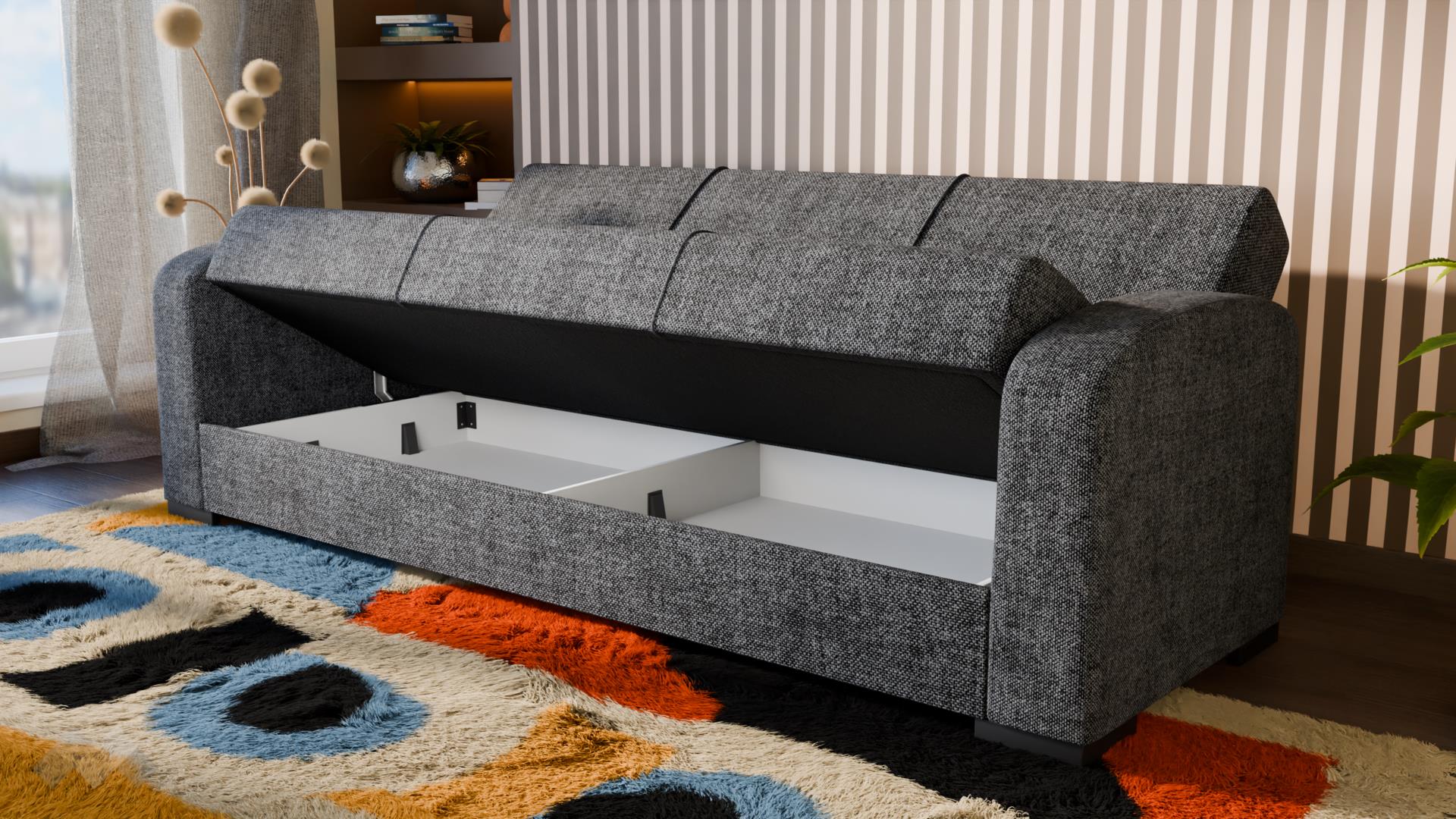 Диванът разполага с функция сън с размери 105/190 см, благодарение на надежден клик-клак механизъм, който позволява бързо и лесно превръщане в удобно легло - практично решение за гости или ежедневно използване. Допълнително предимство е вградената ракла за съхранение, идеална за спално бельо, одеяла и възглавници.