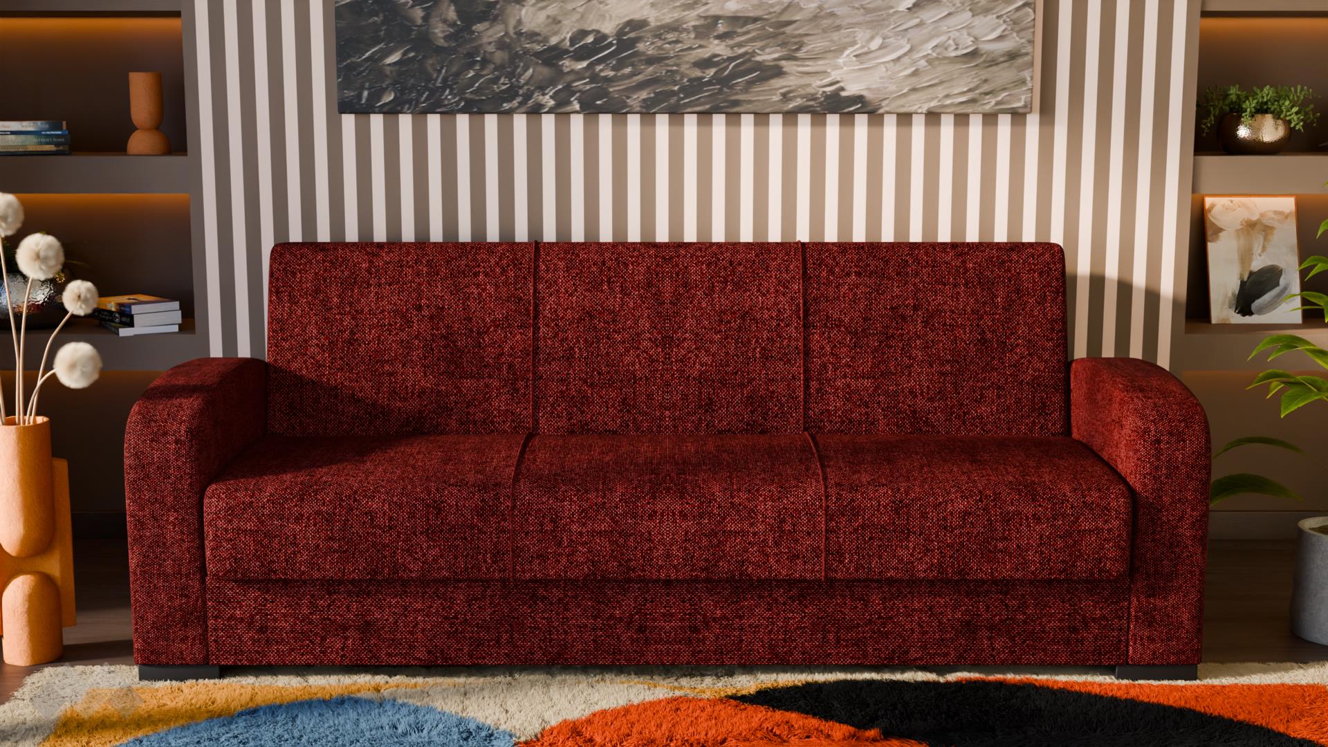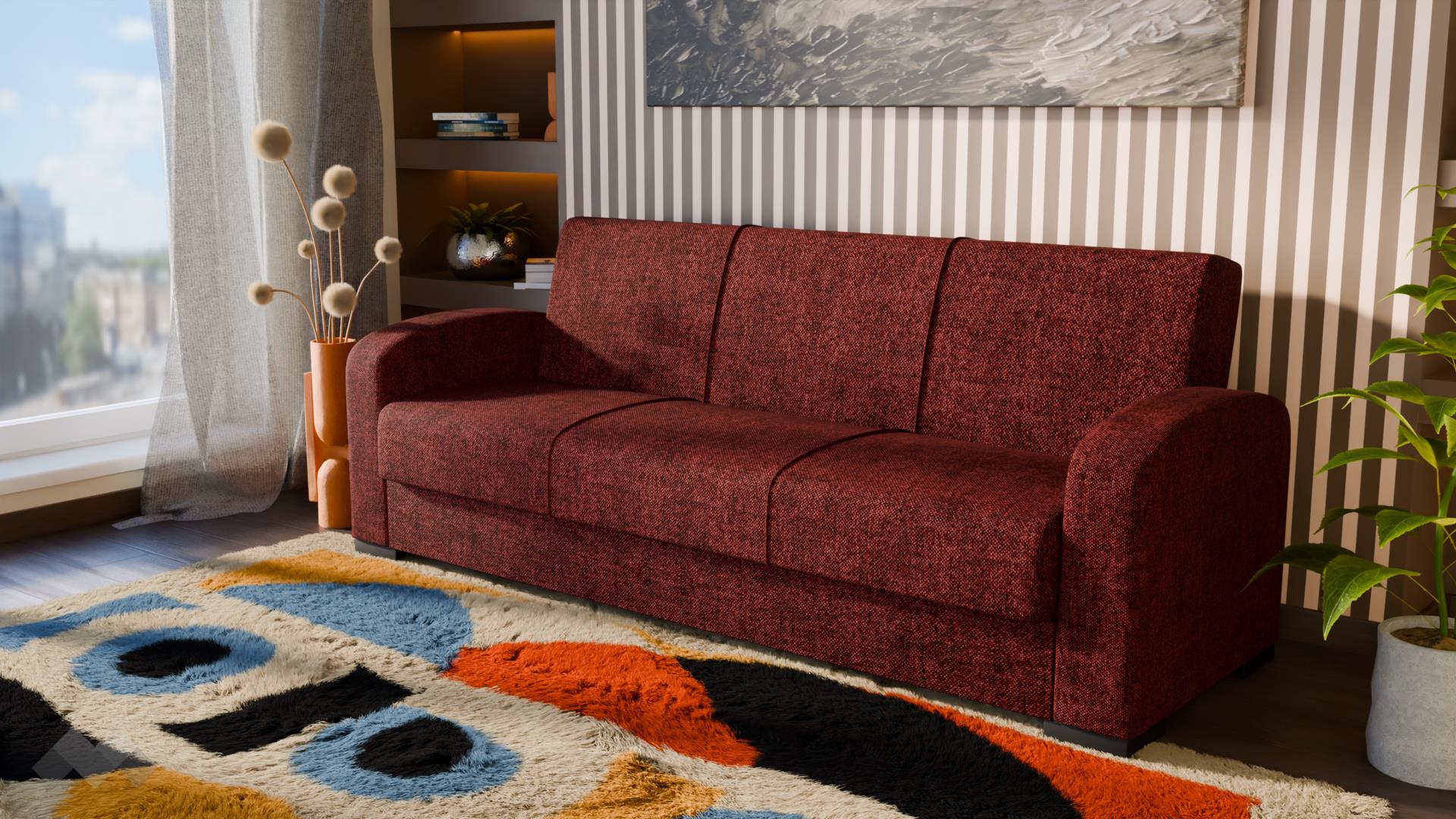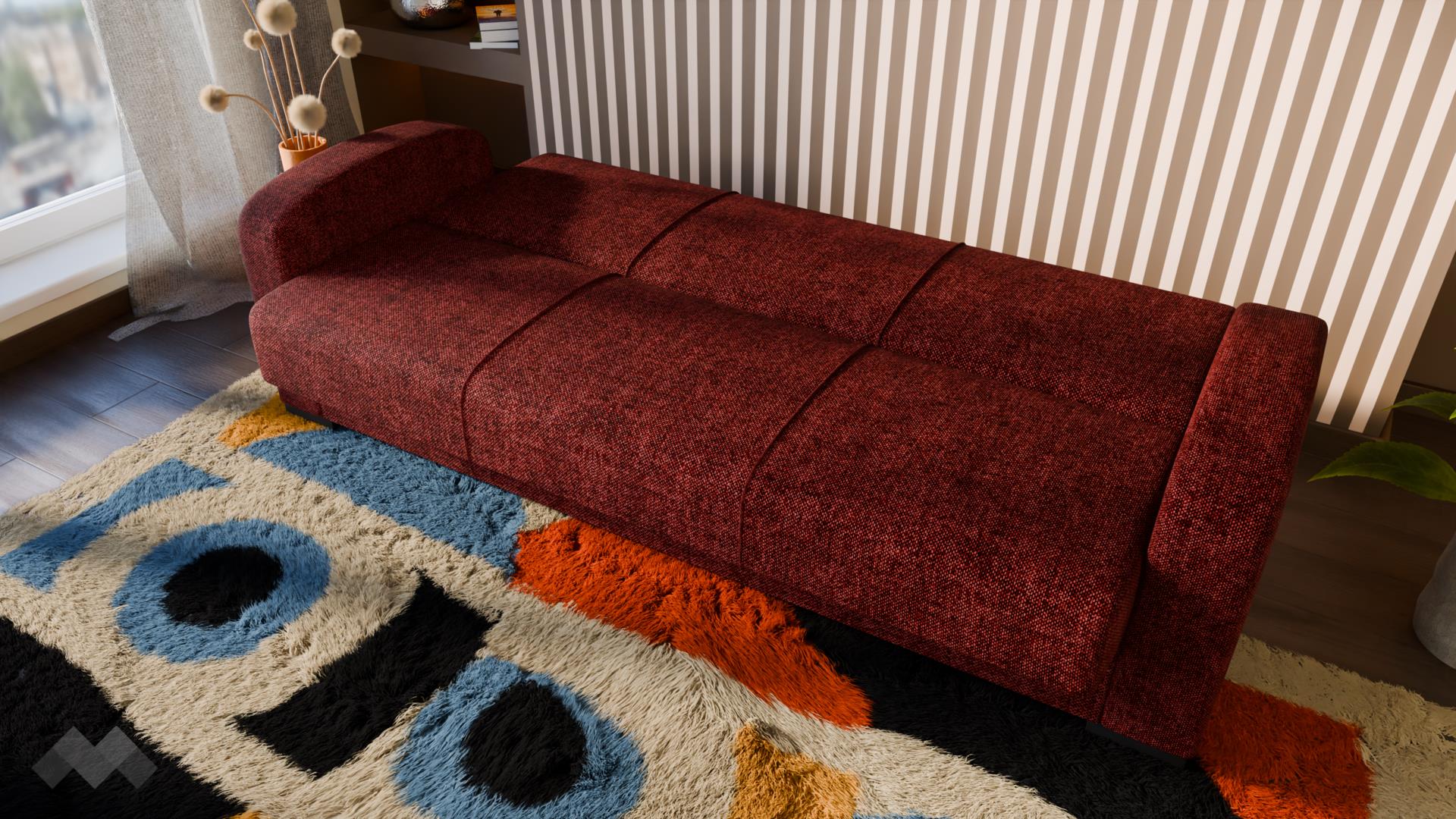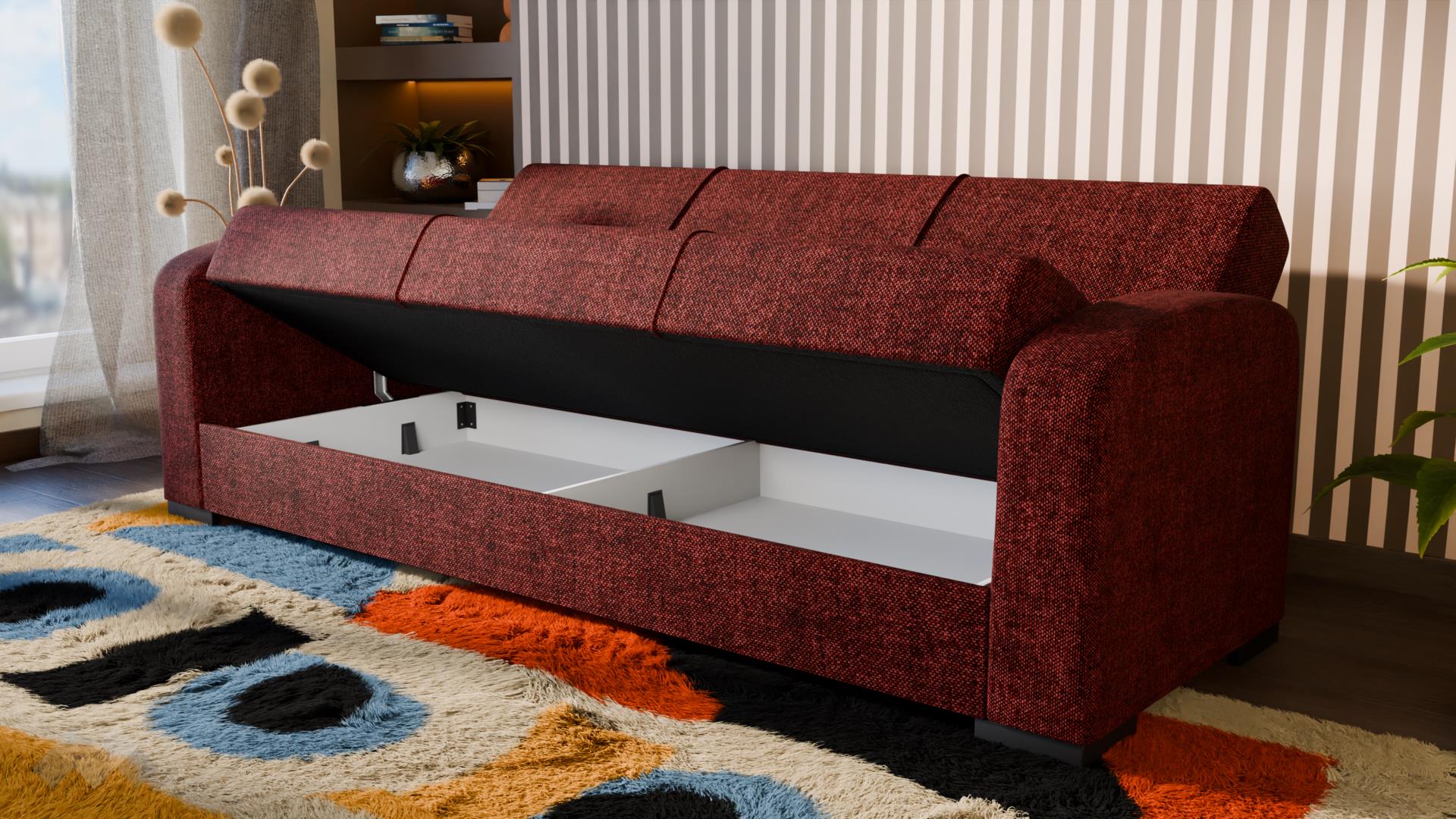 Диванът разполага с функция сън с размери 105/190 см, благодарение на надежден клик-клак механизъм, който позволява бързо и лесно превръщане в удобно легло - практично решение за гости или ежедневно използване. Допълнително предимство е вградената ракла за съхранение, идеална за спално бельо, одеяла и възглавници.