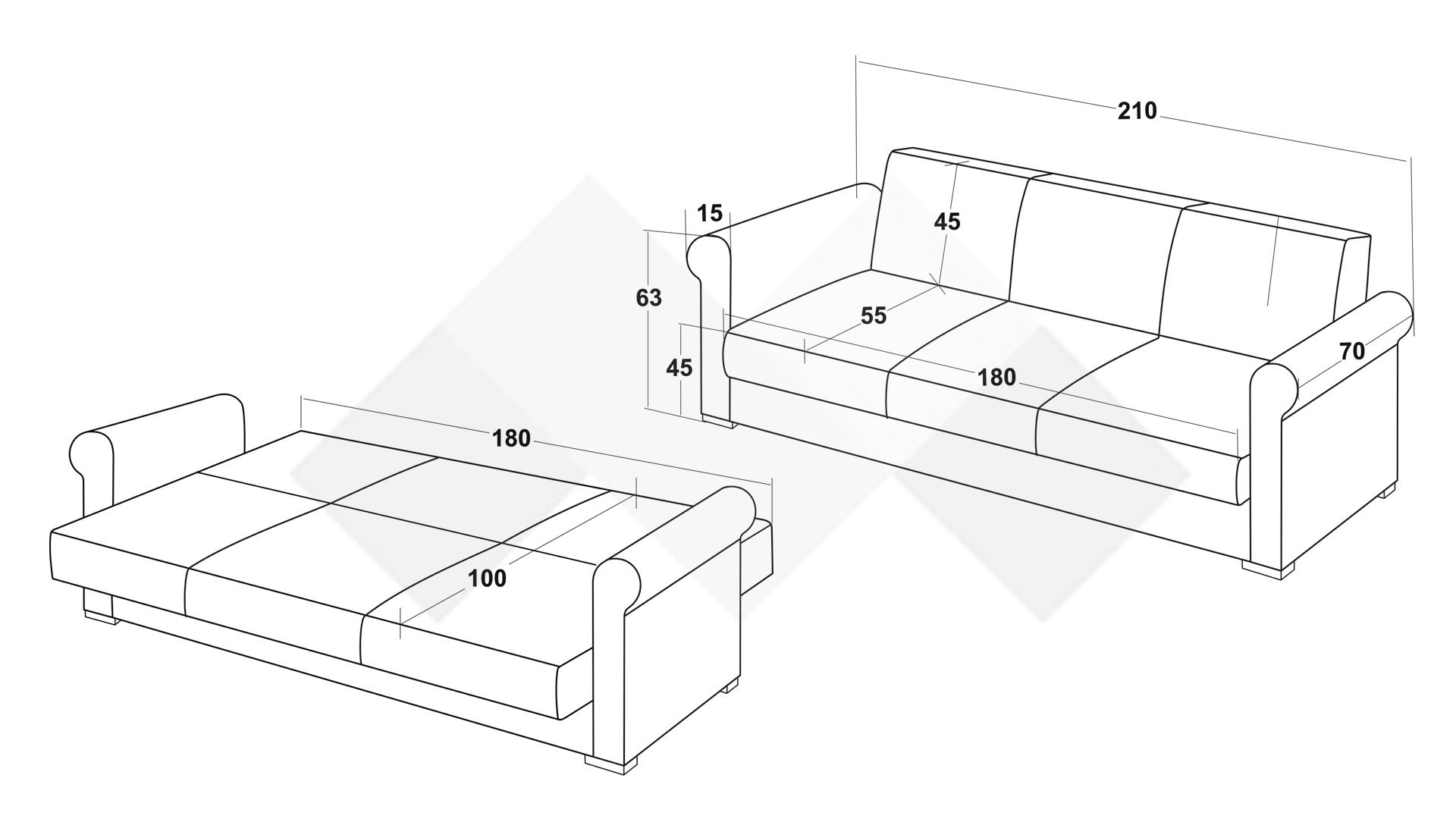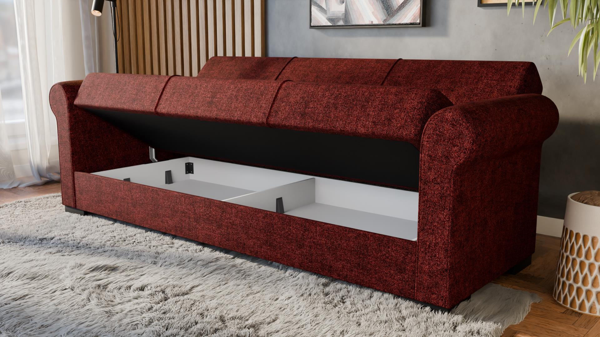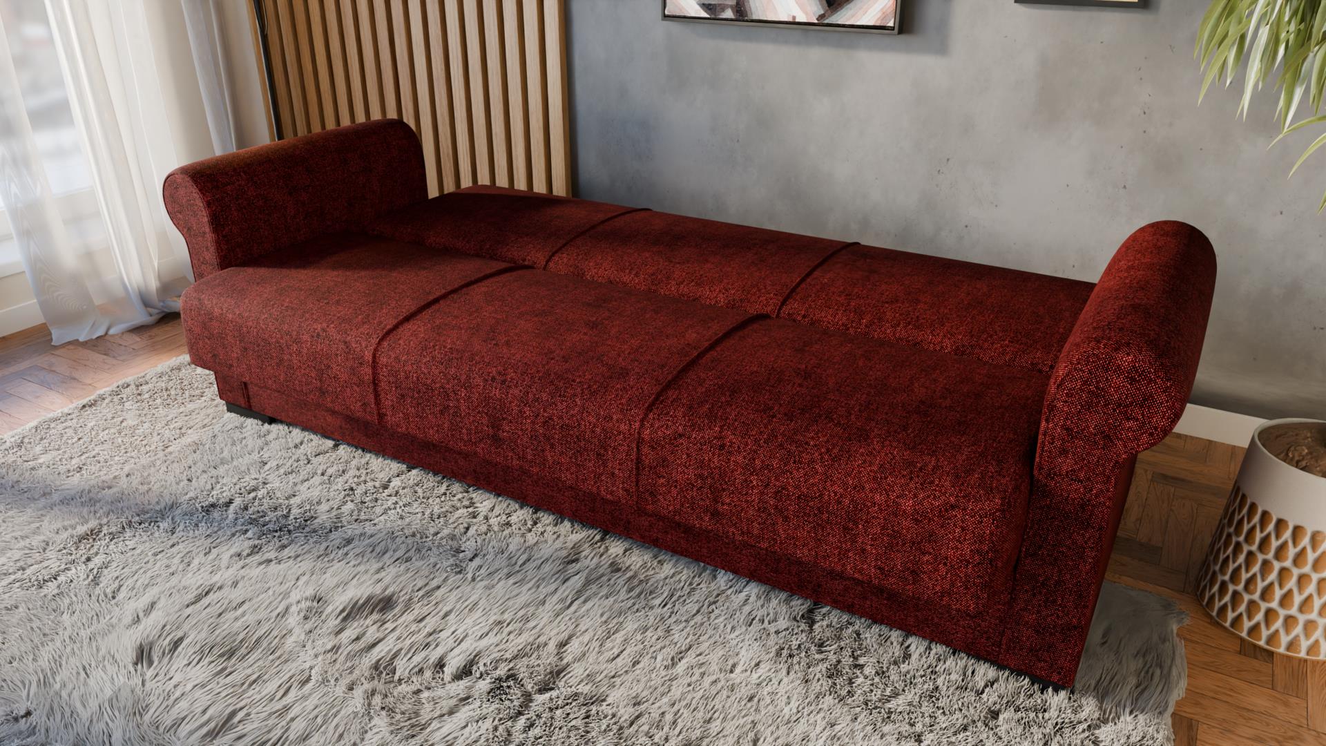 Диванът разполага с функция сън с размери 100/180 см, благодарение на клик-клак механизъм, който позволява бързо и лесно трансформиране в удобно легло - перфектно решение за гости или ежедневно използване. Допълнително удобство е практичната ракла за съхранение, в която можеш да подредиш одеяла, възглавници и спално бельо, като поддържаш дома си организиран.