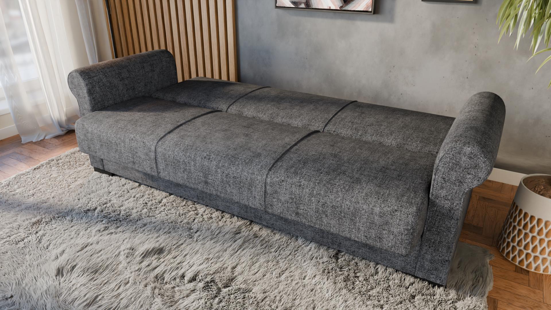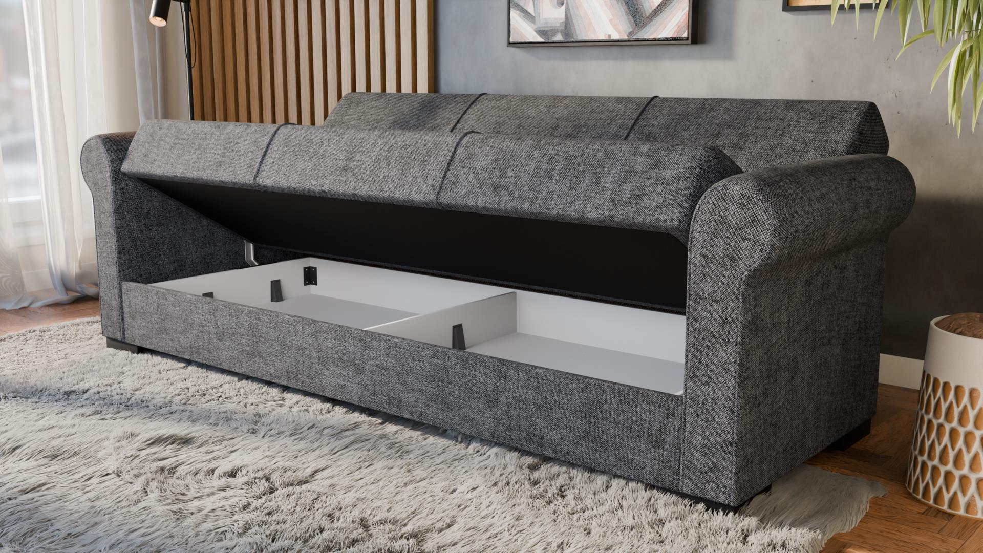 Диванът разполага с функция сън с размери 100/180 см, благодарение на клик-клак механизъм, който позволява бързо и лесно трансформиране в удобно легло - перфектно решение за гости или ежедневно използване. Допълнително удобство е практичната ракла за съхранение, в която можеш да подредиш одеяла, възглавници и спално бельо, като поддържаш дома си организиран.