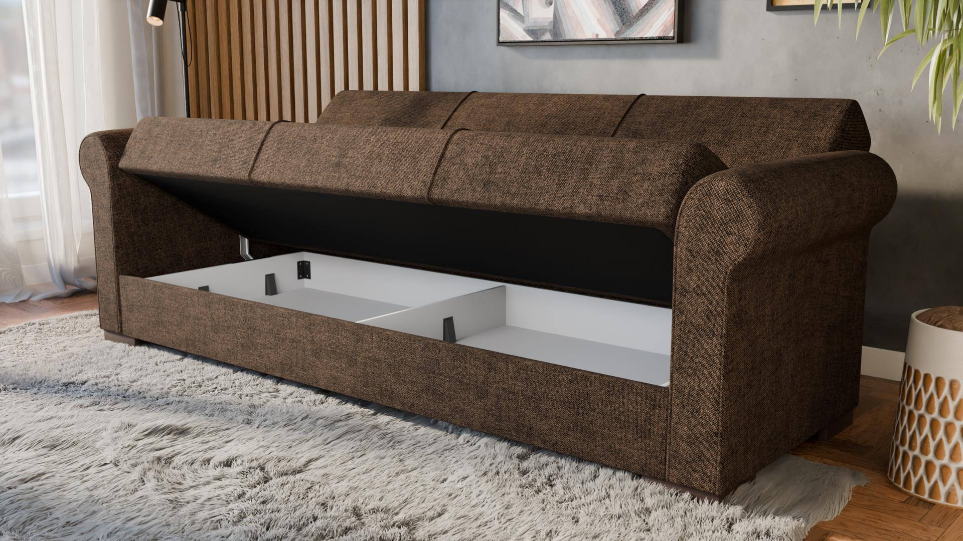 Диванът разполага с функция сън с размери 100/180 см, благодарение на клик-клак механизъм, който позволява бързо и лесно трансформиране в удобно легло - перфектно решение за гости или ежедневно използване. Допълнително удобство е практичната ракла за съхранение, в която можеш да подредиш одеяла, възглавници и спално бельо, като поддържаш дома си организиран.