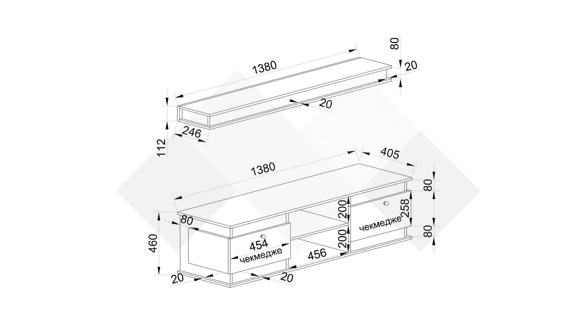 ✓ 2 чекмеджета ✓ 2 отворени рафта ✓ етажерка ✓ модерен дизайн ✓ механизъм за плавно затваряне ✓ компактен и практичен ✓ качествена изработка ✓ 16 мм ПДЧ