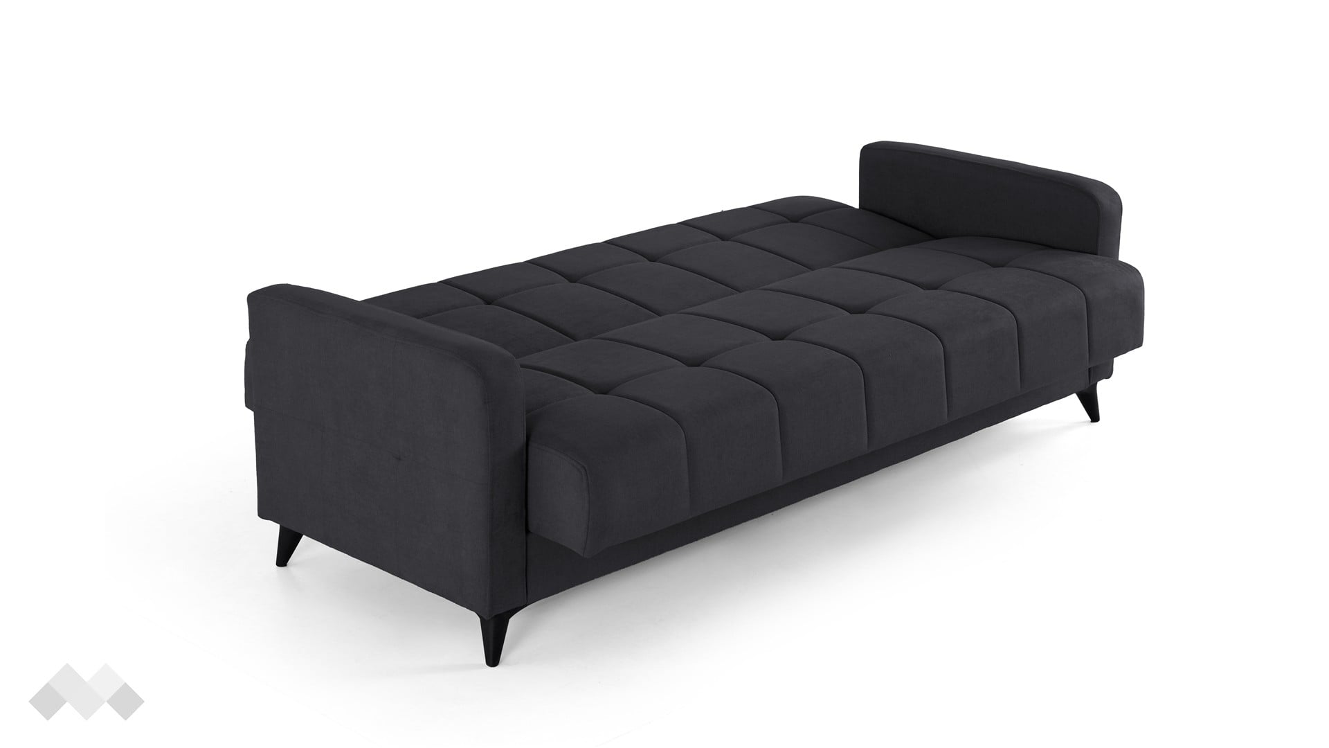 Клик-клак механизмът позволява лесна и бърза трансформация от диван в легло с размер за сън 190/115 см. Това го прави отличен избор както за ежедневна почивка, така и за неочаквани гости. Вградената ракла под седалната част осигурява практично пространство за съхранение на завивки, възглавници и други необходими вещи, така че домът ти винаги да изглежда подреден. Дамаската е устойчива, приятна на допир и подходяща за интензивна употреба.