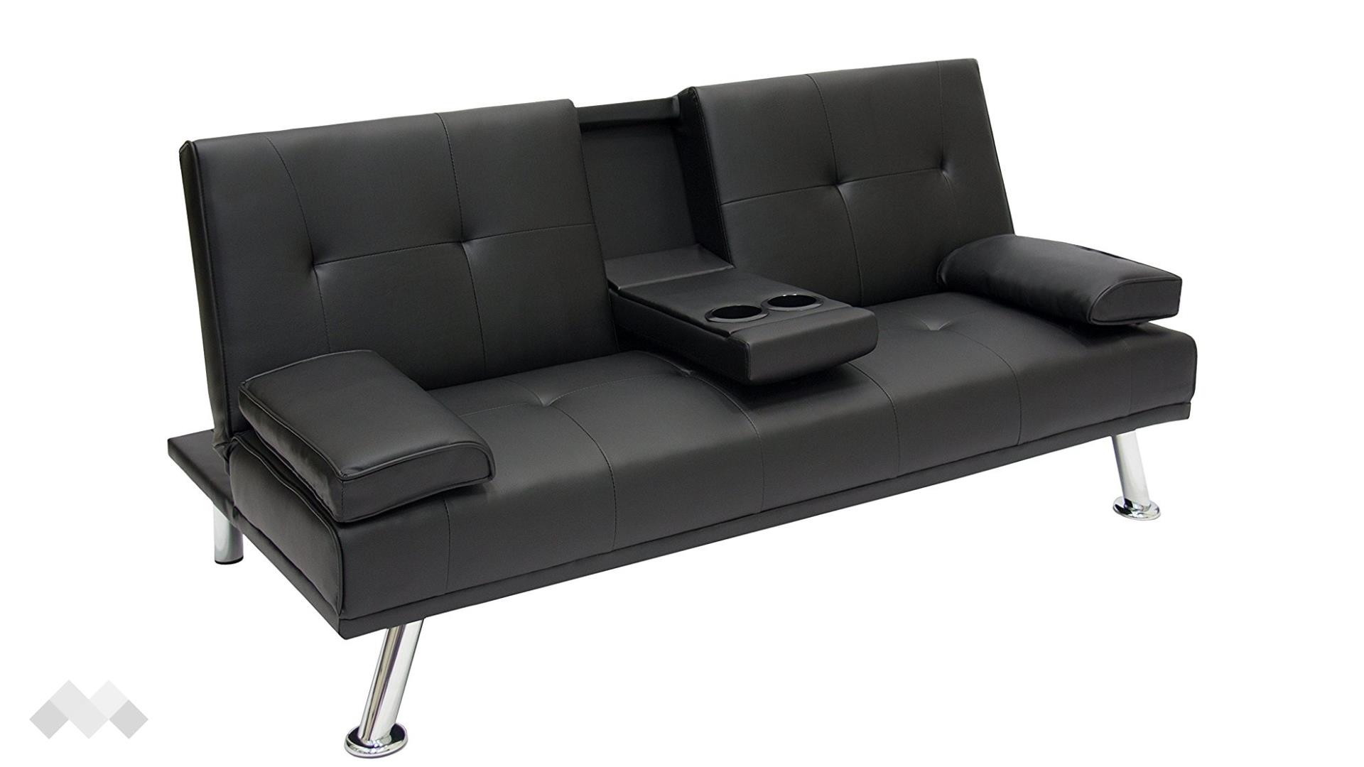 Едно от най-отличителните предимства на модела е падащата поставка за чаши, скрита в централната облегалка – удобна за напитки, дистанционни или малки аксесоари. С едно движение канапето се превръща в удобно легло чрез клик-клак механизъм, а площта за сън 168/98 см е подходяща както за отдих през деня, така и за нощувки.