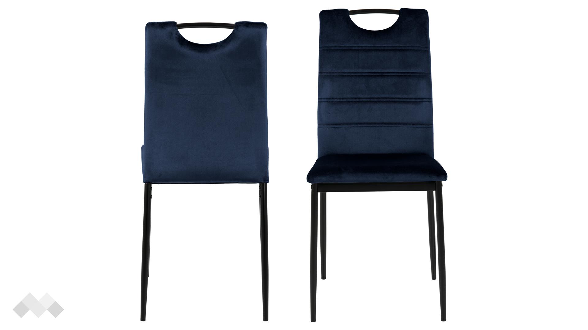 Изчистеният силует, синият цвят и детайлите издигат този стол на следващо ниво. Дръжката и хоризонталните шевове на облегалката придават съвременен характер на модела. Меката, подплатена седалка с висока облегалка прави стола удобен за седене около масата по време на вечерите със семейството и приятелите ти. Седни и се наслади на още една порция вкусна храна, чувствайки се комфортно в уюта на твоя дом. Тапициран с кадифена материя, той създава усещане за лукс и гарантира удобство.