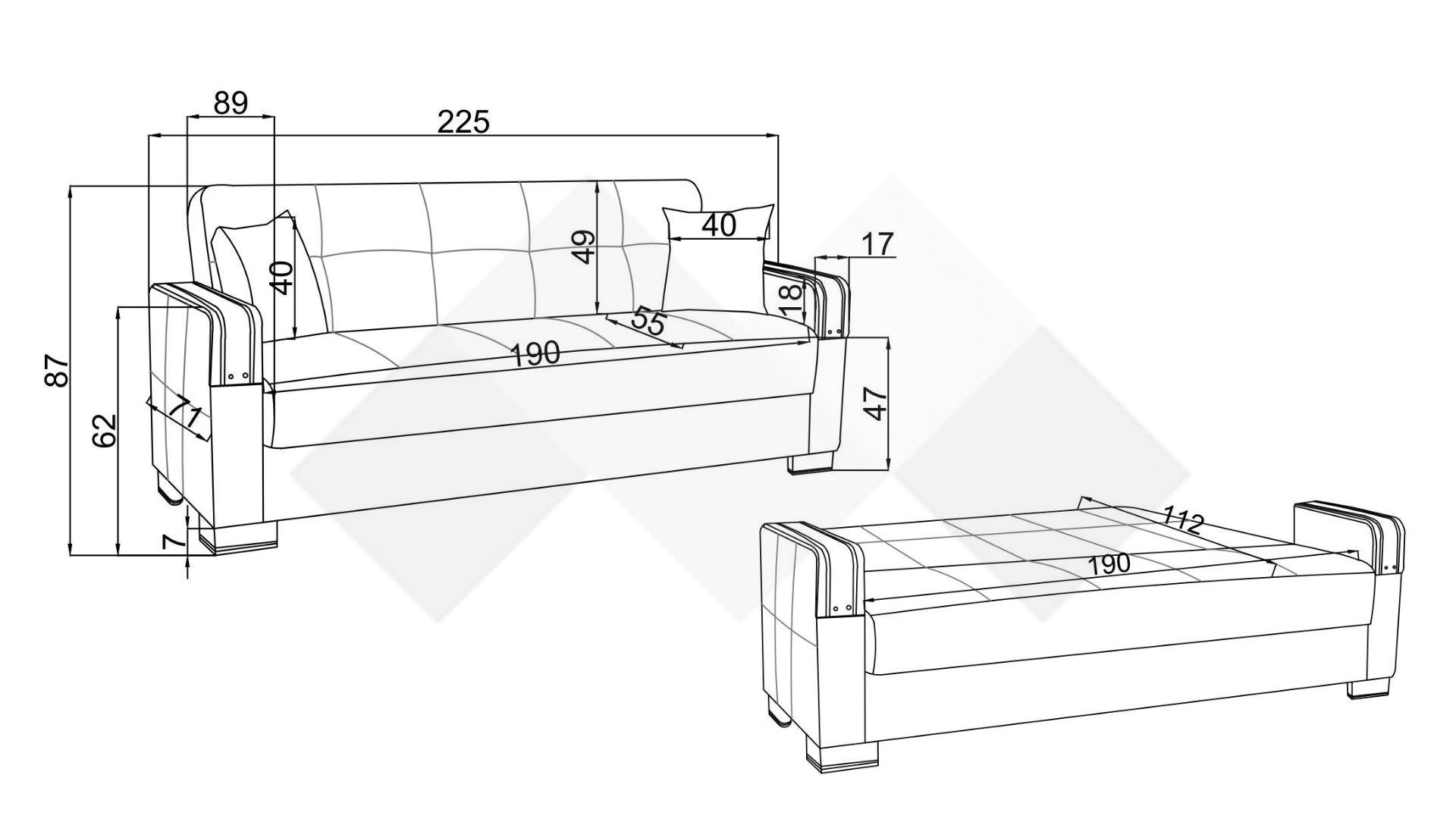 Диванът има здрава конструкция с бонел пружина, отличаваща се с устойчивост за дълъг период на употреба.