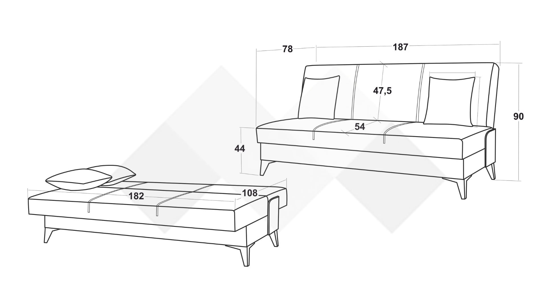 Благодарение на семплия и изчистен дизайн на модела, той ще се впише перфектно в интериора ти, без да привлича излишно внимание, но и ще се превърне в любимата мебел, с която определено можеш да се похвалиш. Вграденият клик-клак механизъм превръща модела с минимални усилия в удобно легло - 108/182 см, което ще те предразположи да се отпуснеш за къса следобедна дрямка или почивка с книга в ръка. Ще разполагаш и с просторна ракла за вещите, които искаш да скриеш от погледа на гостите си, за да остане стаята чиста и подредена.
