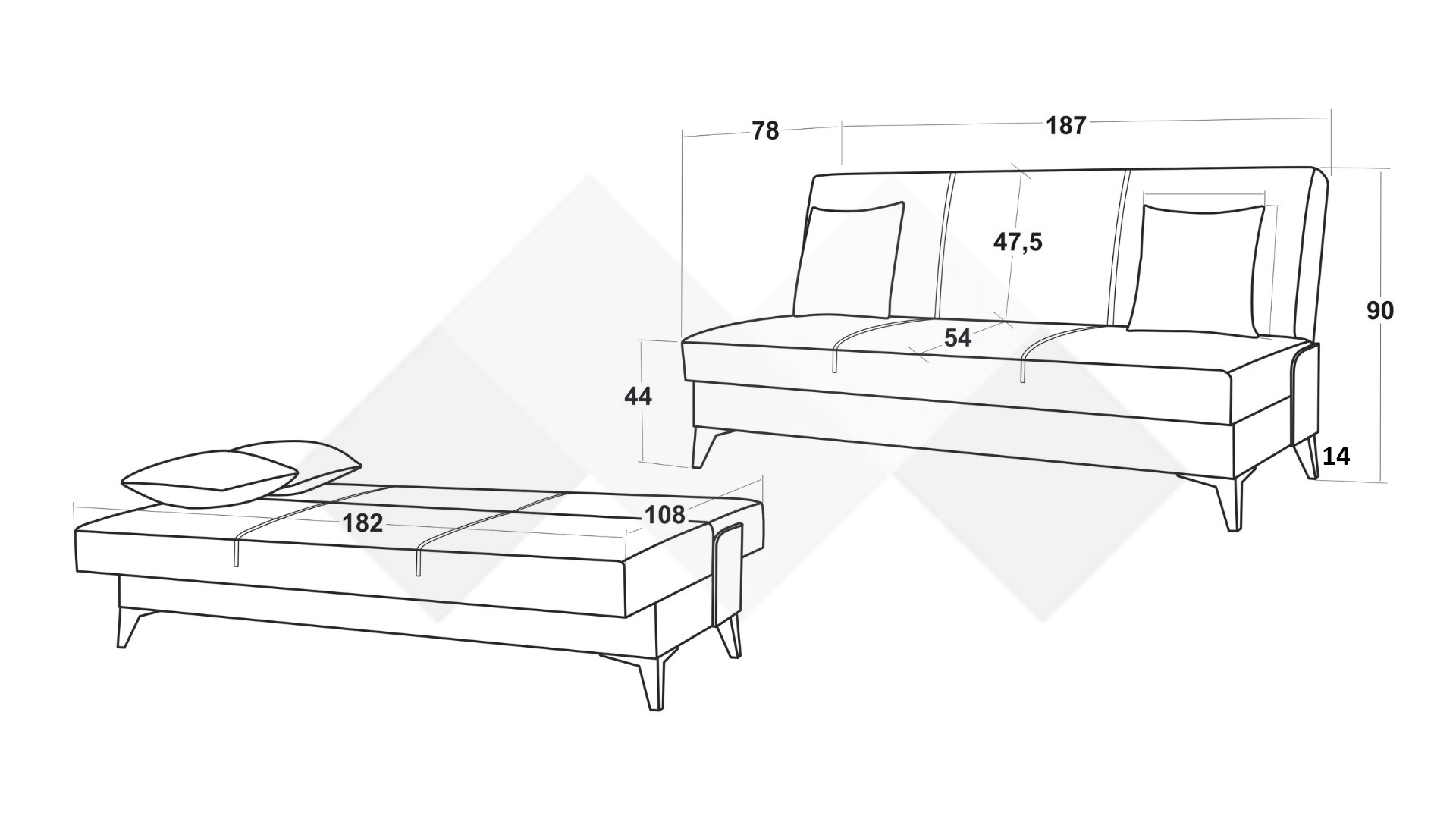 Вграденият клик-клак механизъм превръща модела с минимални усилия в удобно легло - 108/182 см, което ще те предразположи да се отпуснеш за къса следобедна дрямка или почивка с книга в ръка. Ще разполагаш и с просторна ракла за вещите, които искаш да скриеш от погледа на гостите си, за да остане стаята чиста и подредена.